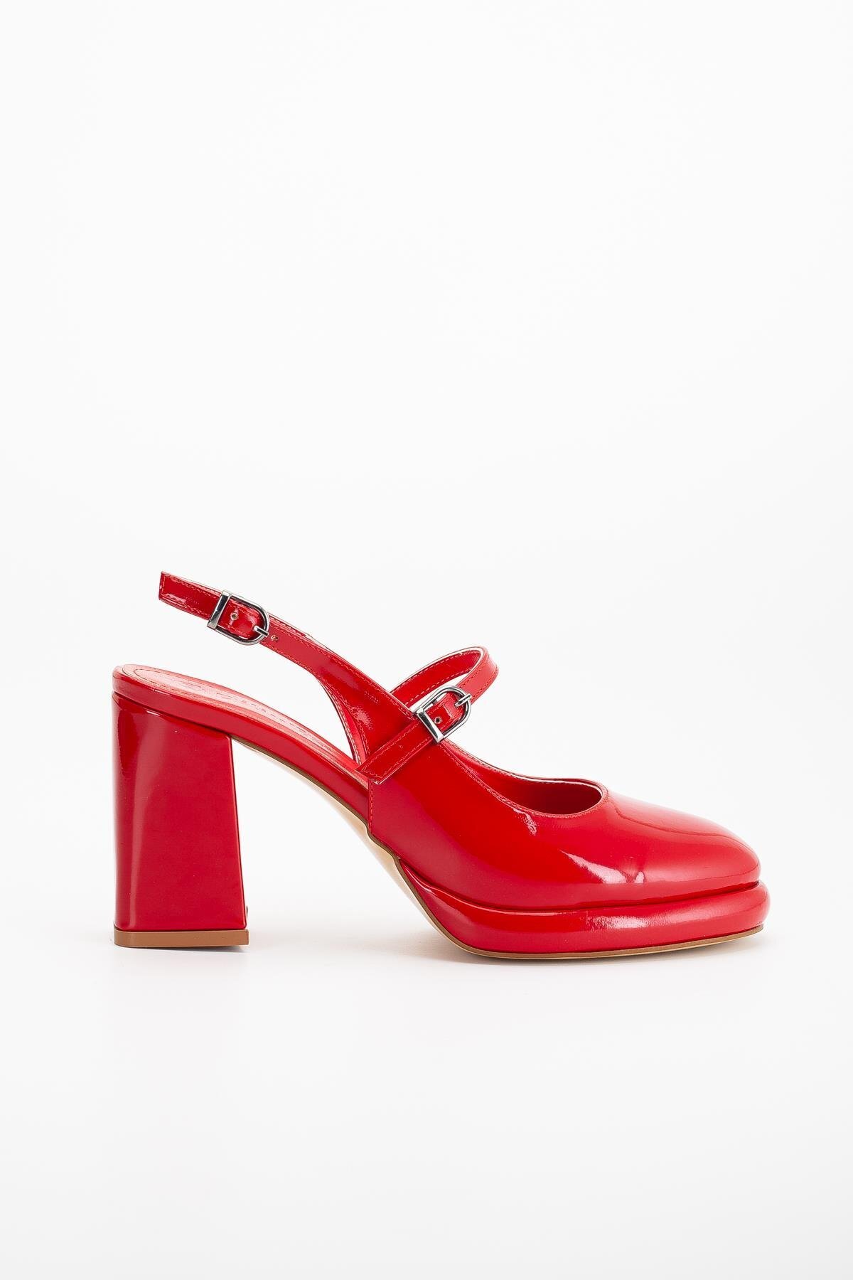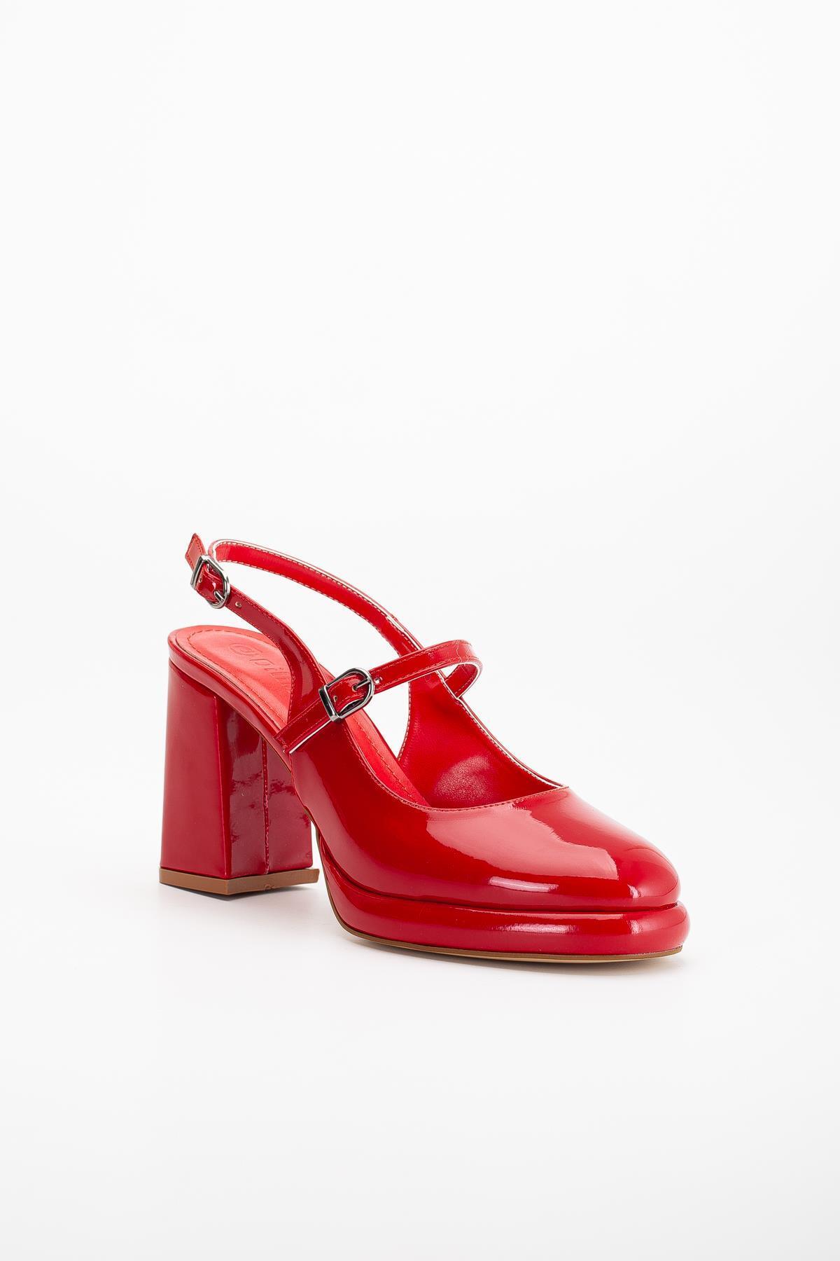 Kadın Abiye Platform Topuklu Ayakkabı Kırmızı Rugan Yuvarlak Burun Kadın Abiye Platform Topuklu Ayakkabı Kırmızı Rugan Yuvarlak Burun 132-4438-RUGAN 40