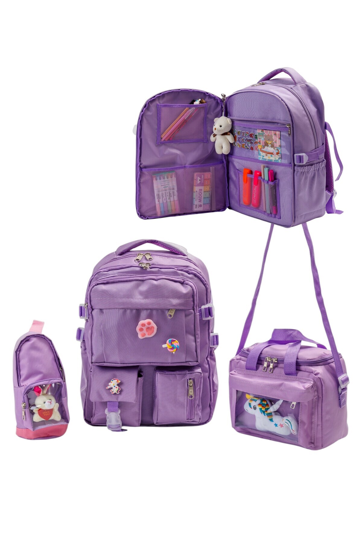 Kore Tarzı Aksesuarlı Termal Beslenmelik ve Kalemlikli Kız Çocuk Sırt Okul Çantası Seti Kore Tarzı Aksesuarlı Termal Beslenmelik ve Kalemlikli Kız Çocuk Sırt Okul Çantası Seti ulusoykoretarzmsmixx تک سایز
