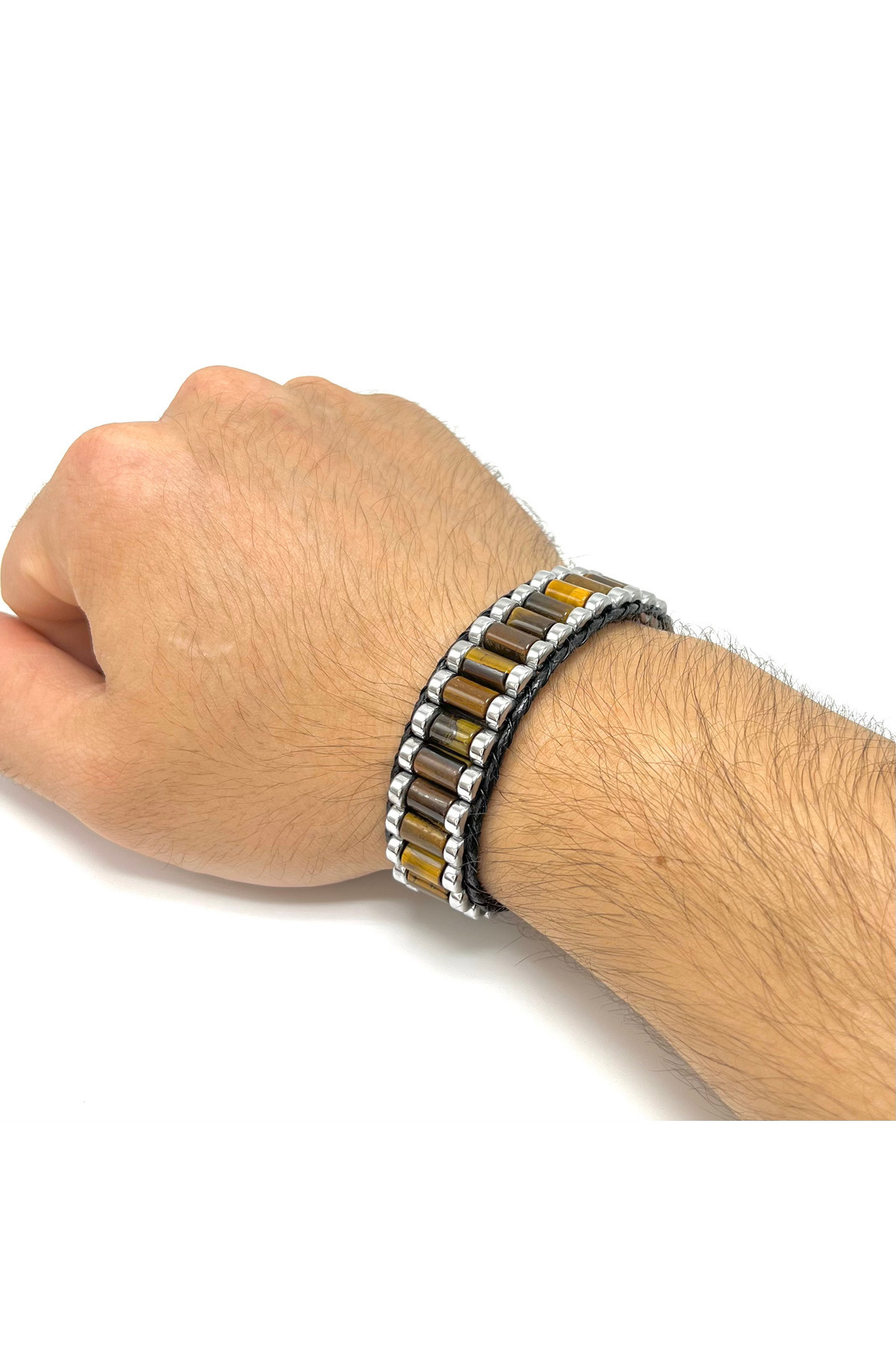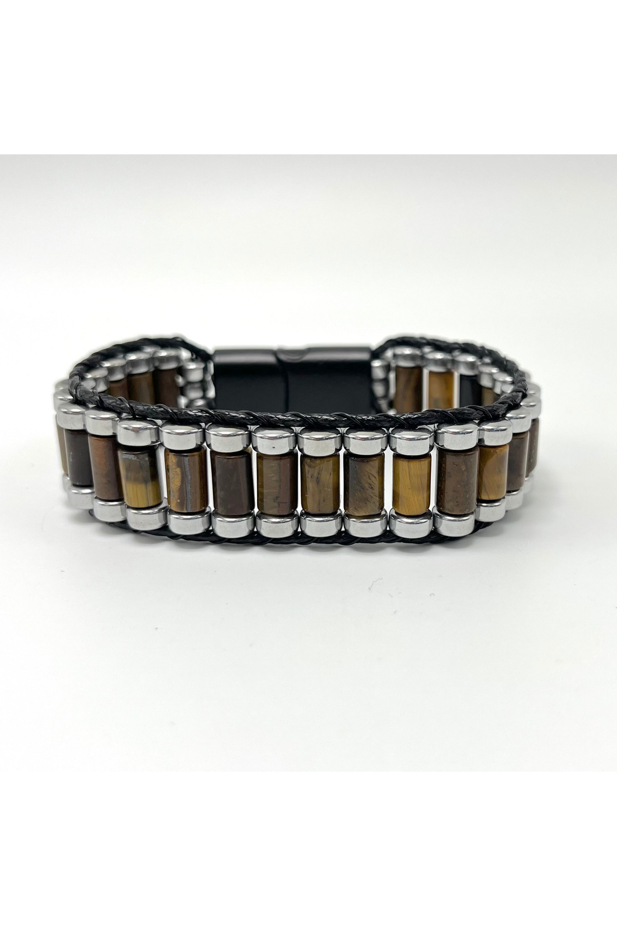 Sertifikalı Kaplan Gözü ve Hematit Silindir Kesim Kilitli Doğal Taş Deri Erkek Bileklik Sertifikalı Kaplan Gözü ve Hematit Silindir Kesim Kilitli Doğal Taş Deri Erkek Bileklik ydb391 21 cm