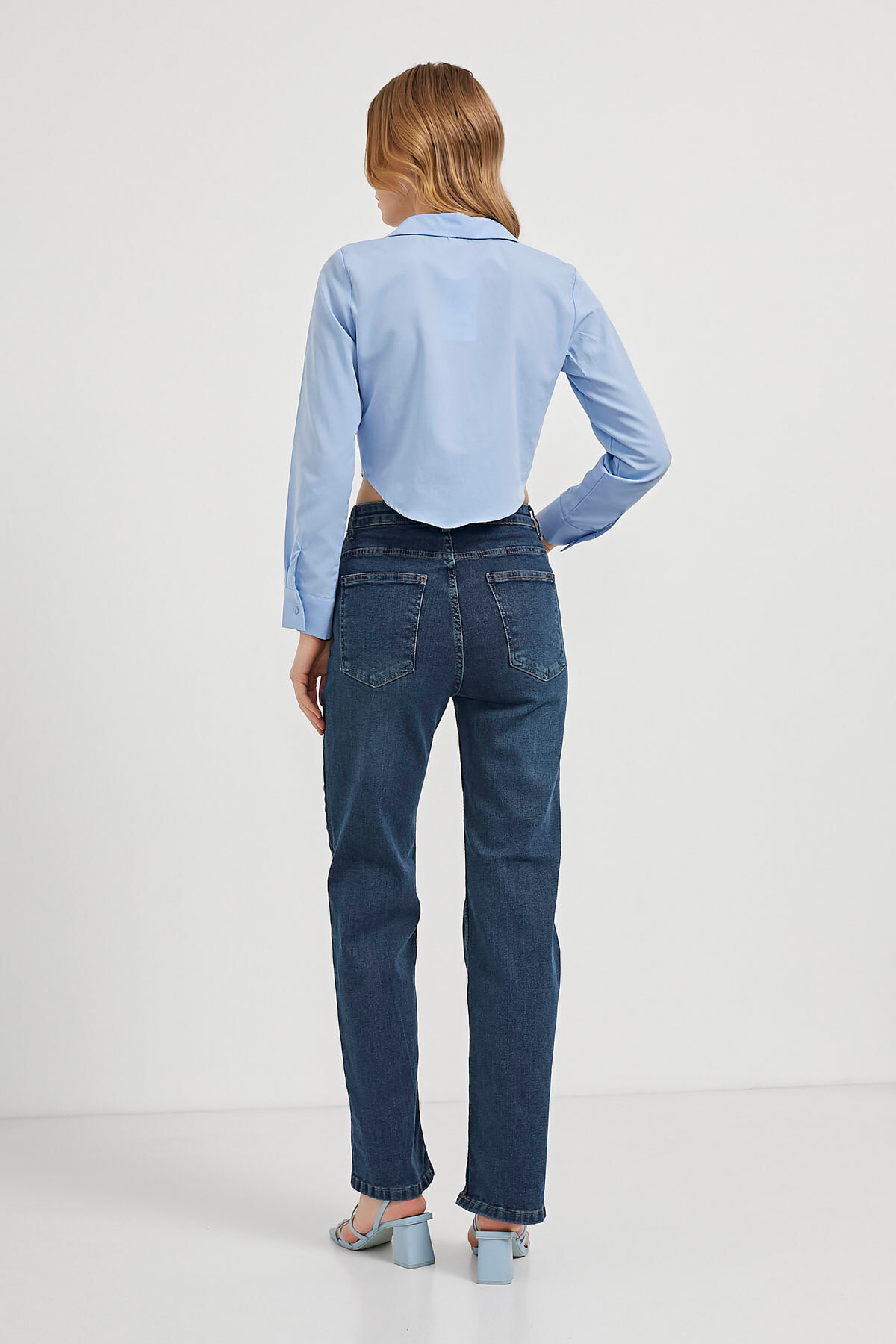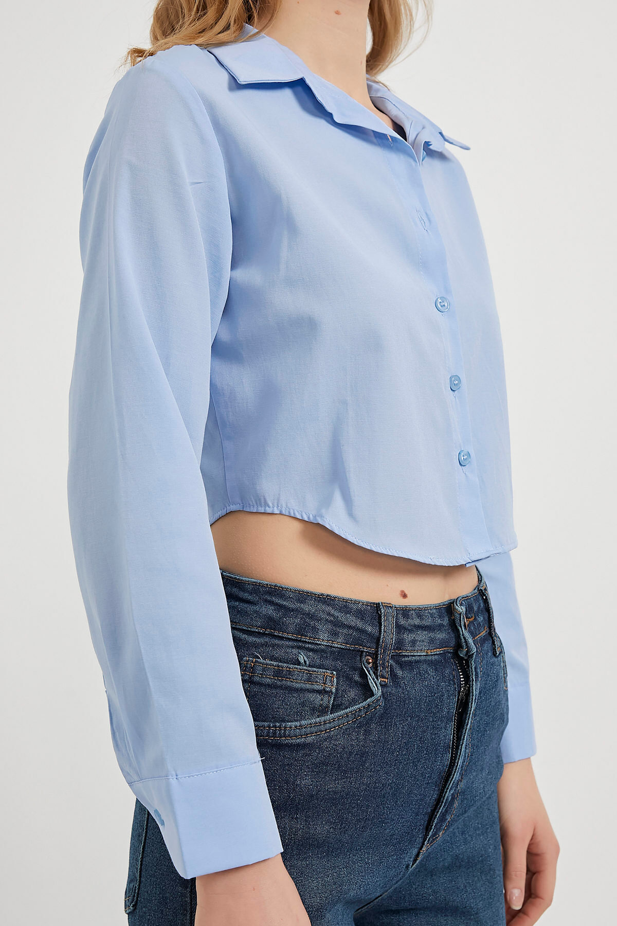 Kadın Kısa Yazlık Uzun Kollu Bol Mavi Crop Gömlek Kadın Kısa Yazlık Uzun Kollu Bol Mavi Crop Gömlek 470-5YB7336GML XL