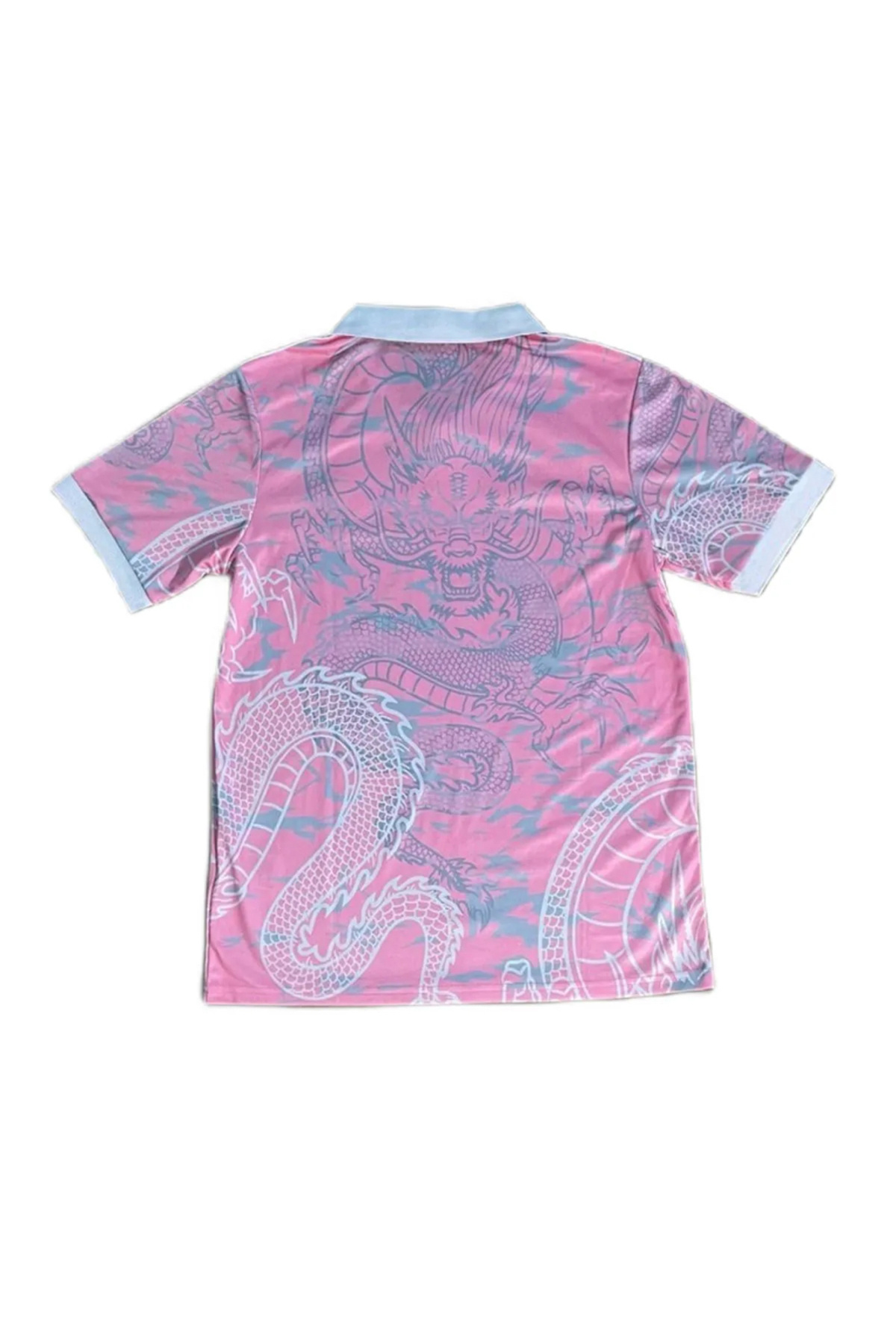 Pembe Kitty Dragon Jersey Beyaz Düğmeli Yaka T-shirt Pembe Kitty Dragon Jersey Beyaz Düğmeli Yaka T-shirt forma01 XL