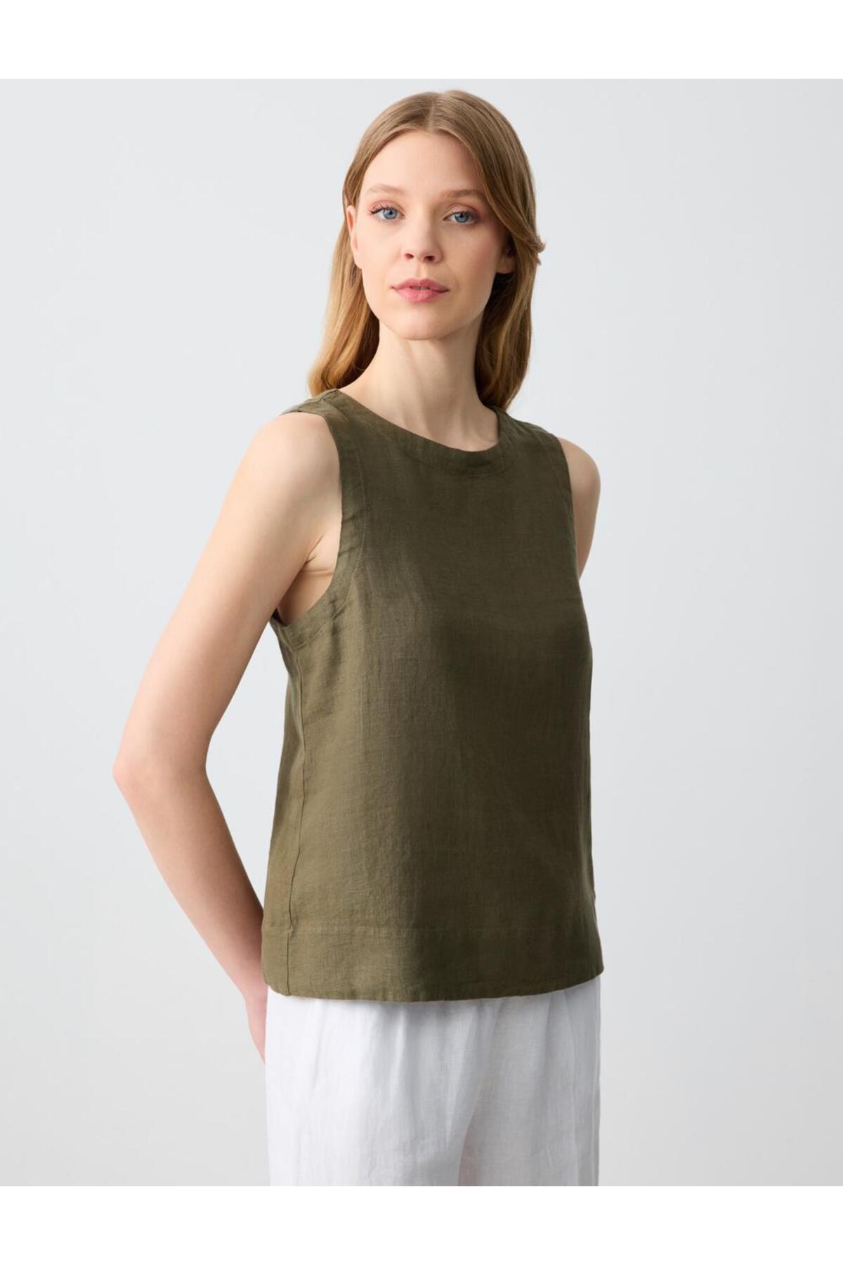 Haki %100 Keten Yuvarlak Yaka Kolsuz Dokuma Bluz Haki %100 Keten Yuvarlak Yaka Kolsuz Dokuma Bluz 5SW032579 2XL