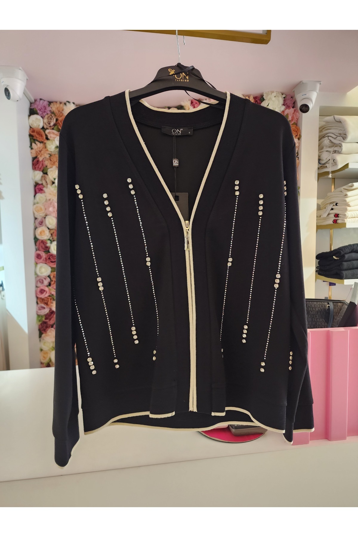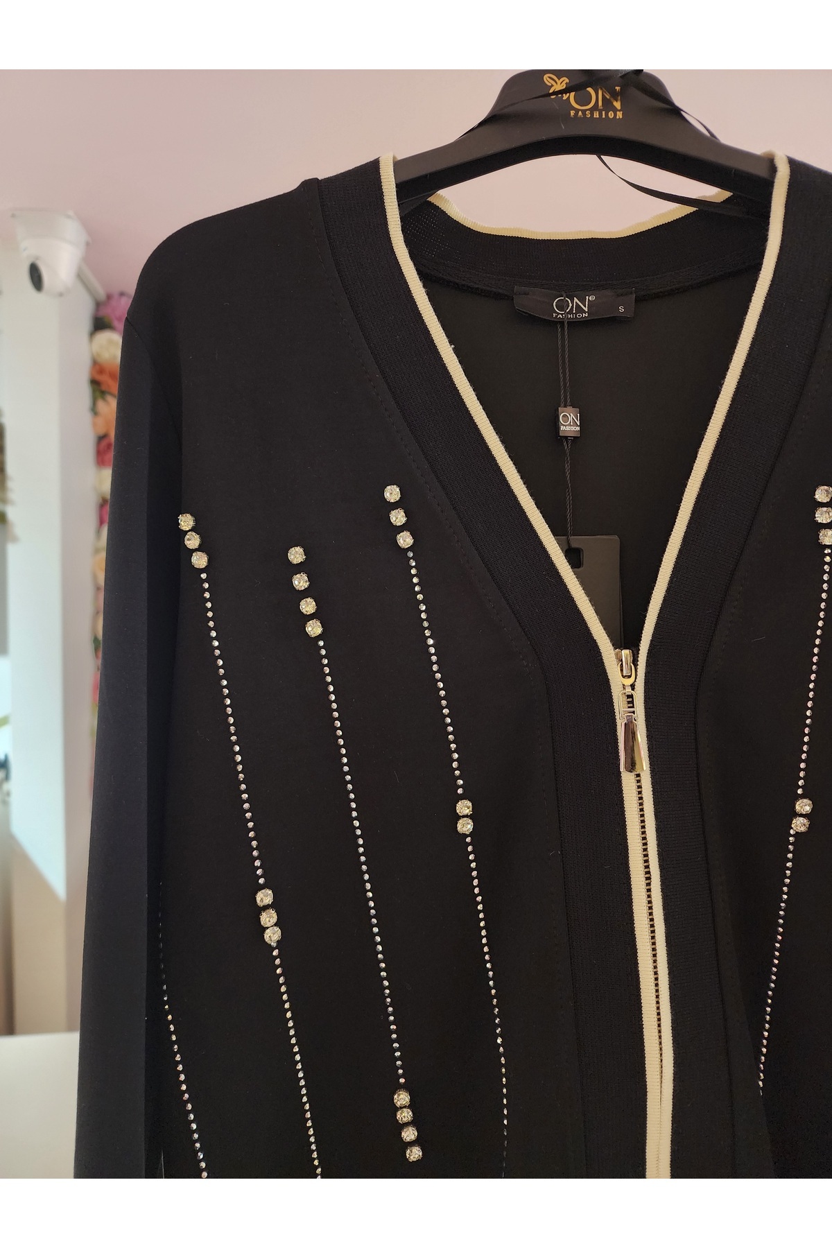 kadın siyah fermuarlı taş detaylı ceket kadın siyah fermuarlı taş detaylı ceket 56931 M