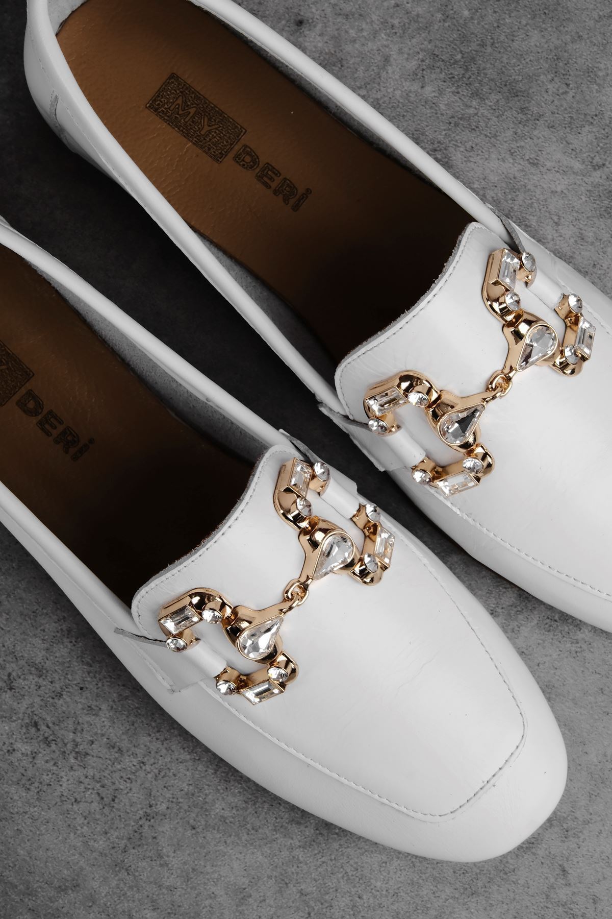 Snow Kadın Hakiki Deri Parlak Taş Toka Detaylı Babet Ayakkabı-beyaz Snow Kadın Hakiki Deri Parlak Taş Toka Detaylı Babet Ayakkabı-beyaz B3811 40