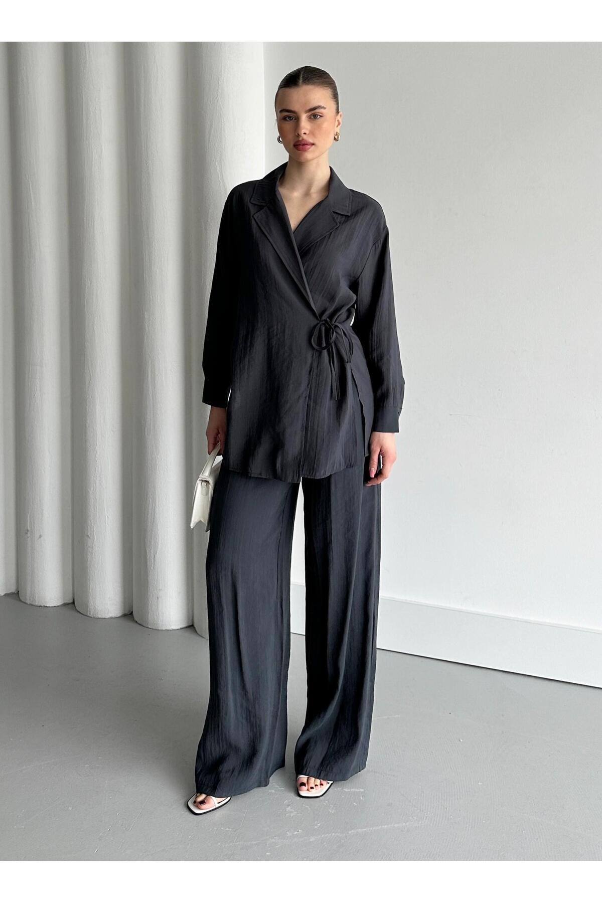 Koyu Bej Yaka Detaylı Bağlamalı Kimono Takım - 8459 Koyu Bej Yaka Detaylı Bağlamalı Kimono Takım - 8459 Efil - 8459 L