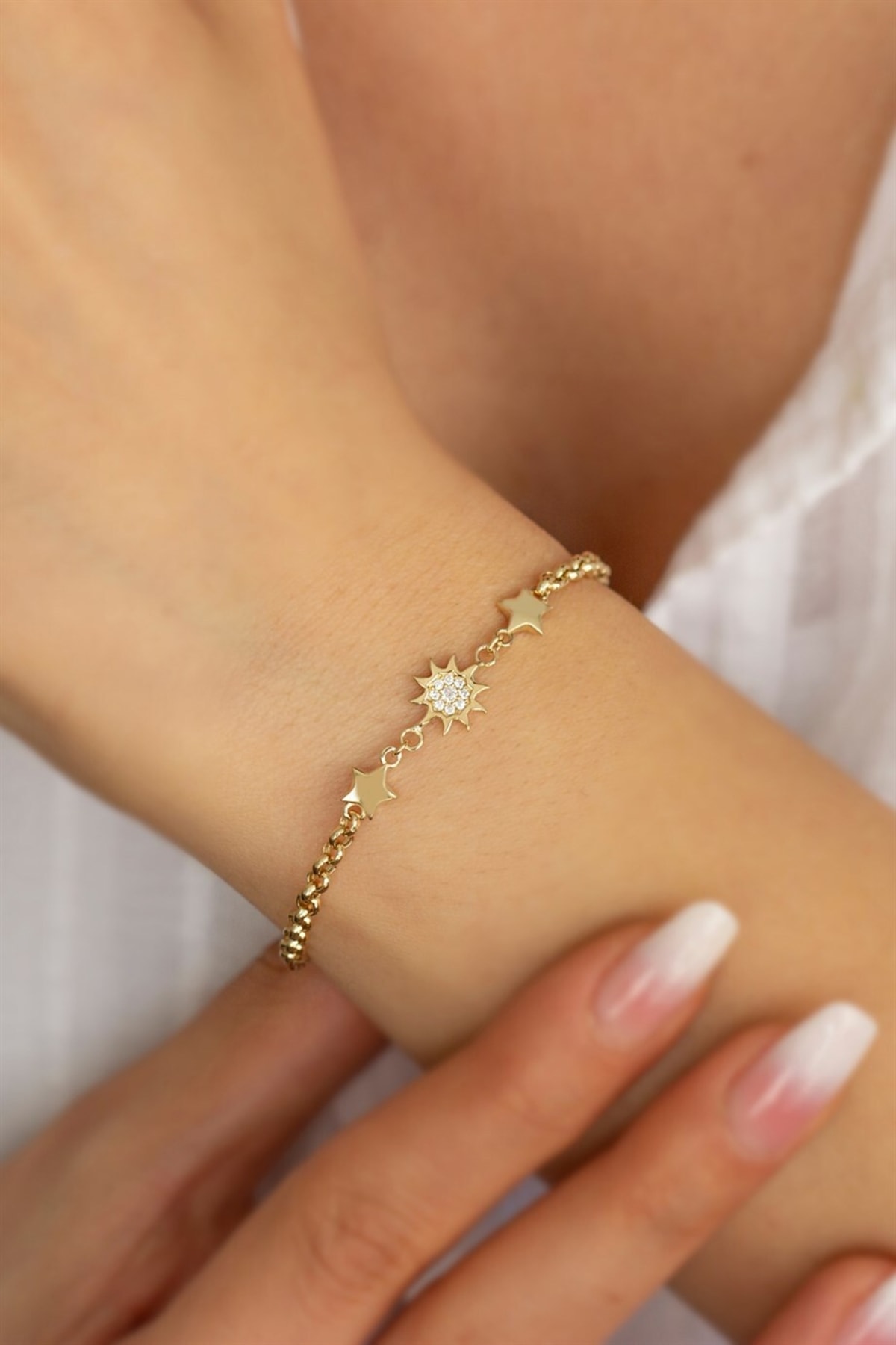 Kadın Sarı Yıldızlı Altın Bileklik Kadın Sarı Yıldızlı Altın Bileklik BL02030 تک سایز