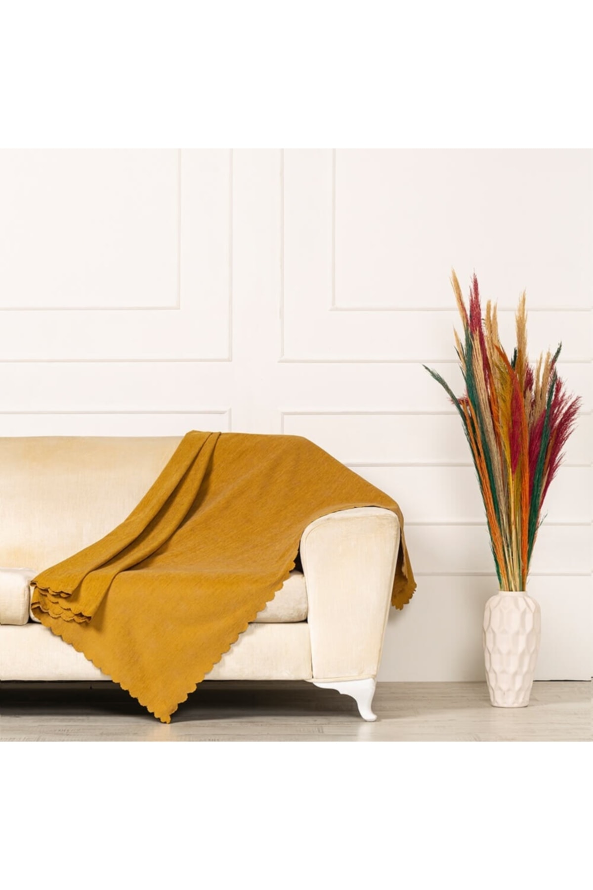 Hardal Peluş Kısa Tüy Koltuk Şal Hardal Peluş Kısa Tüy Koltuk Şal FSC006 130 x 170