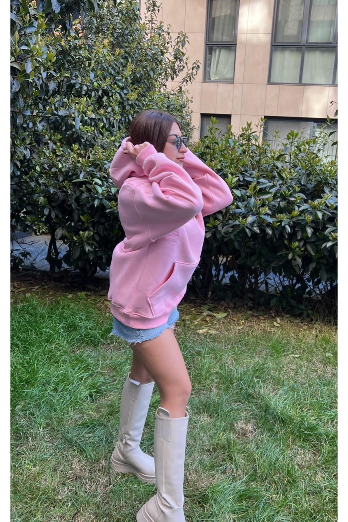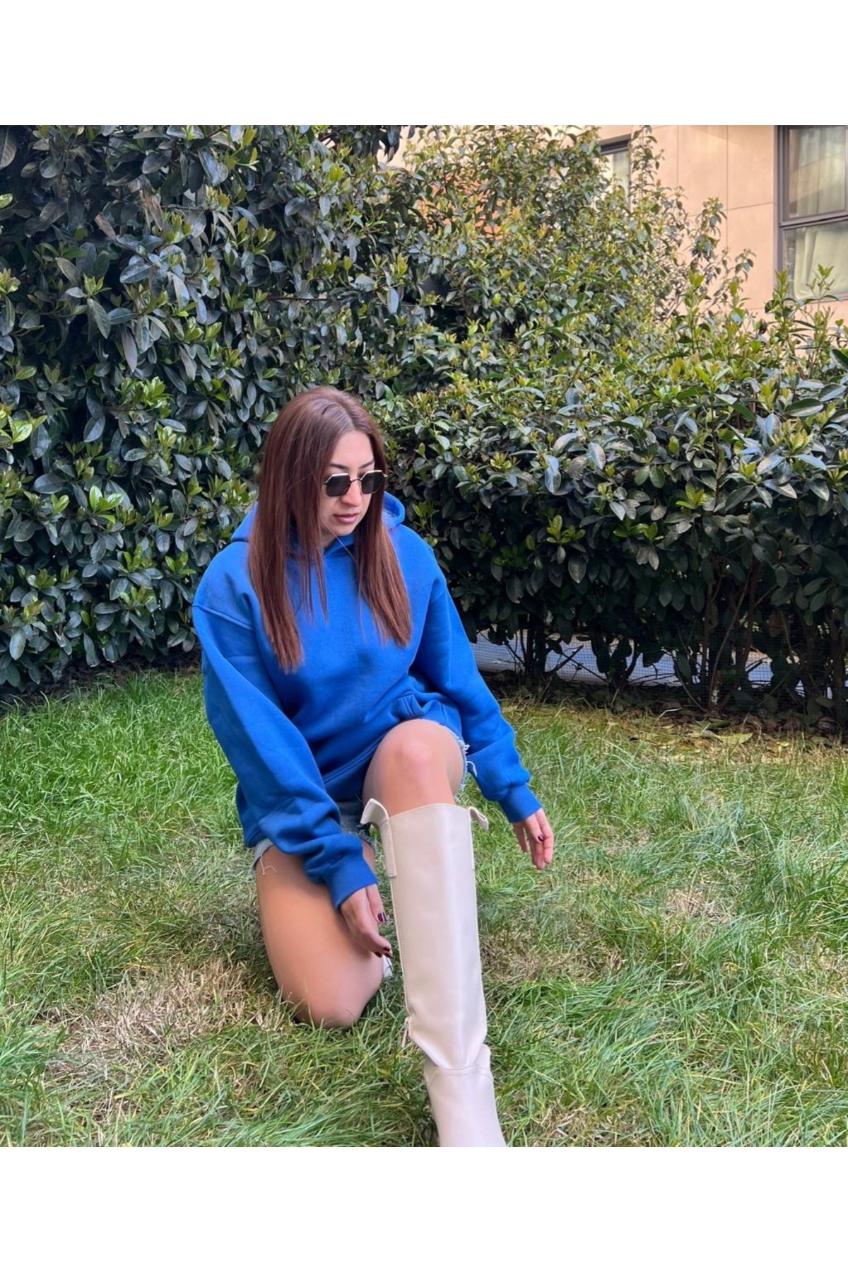 Oversize Kapüşonlu Mavi Sweatshirt Oversize Kapüşonlu Mavi Sweatshirt BD004 XL