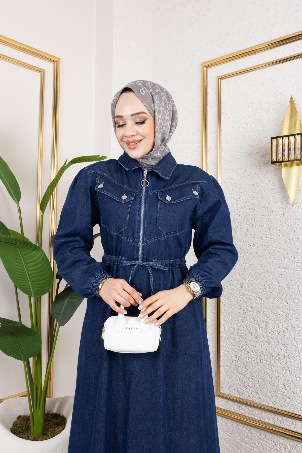 KADIN KAPAK CEP DETAYLI KOT ELBİSE KADIN KAPAK CEP DETAYLI KOT ELBİSE 6116 48