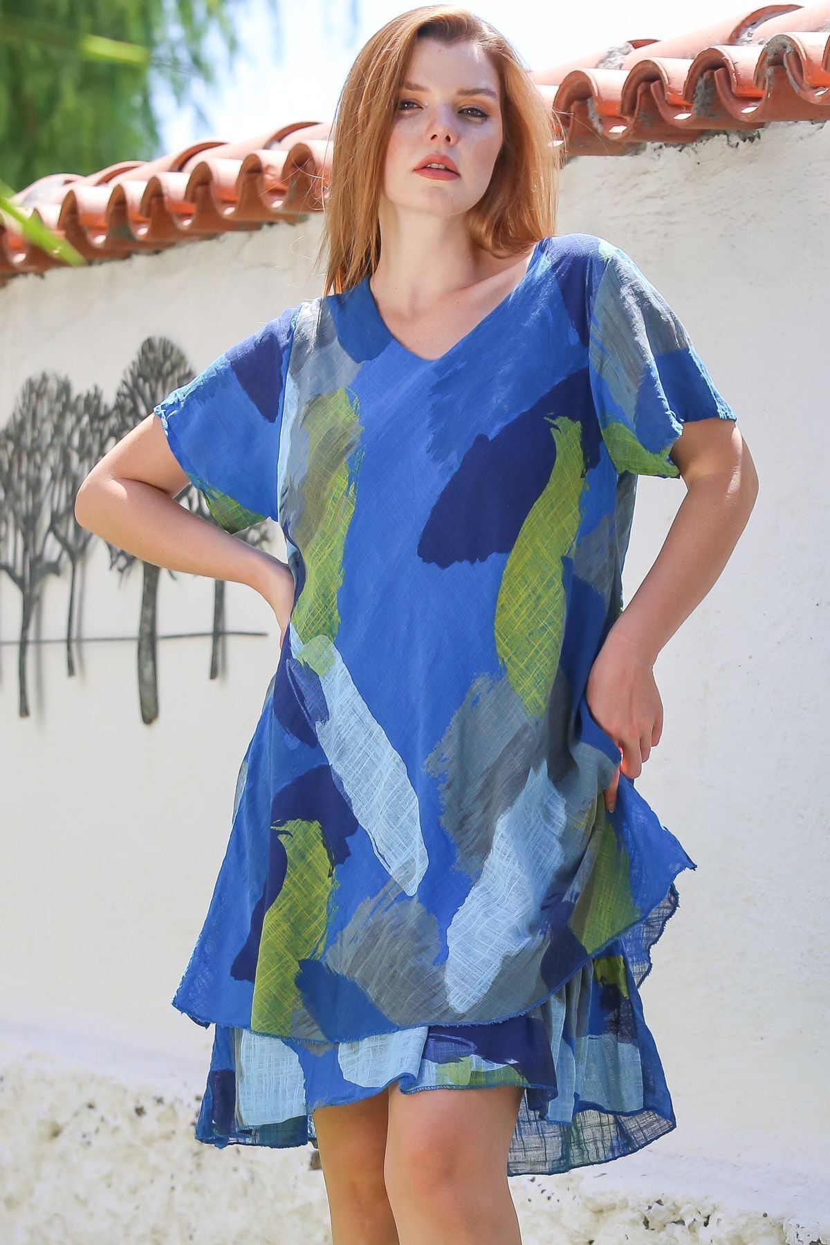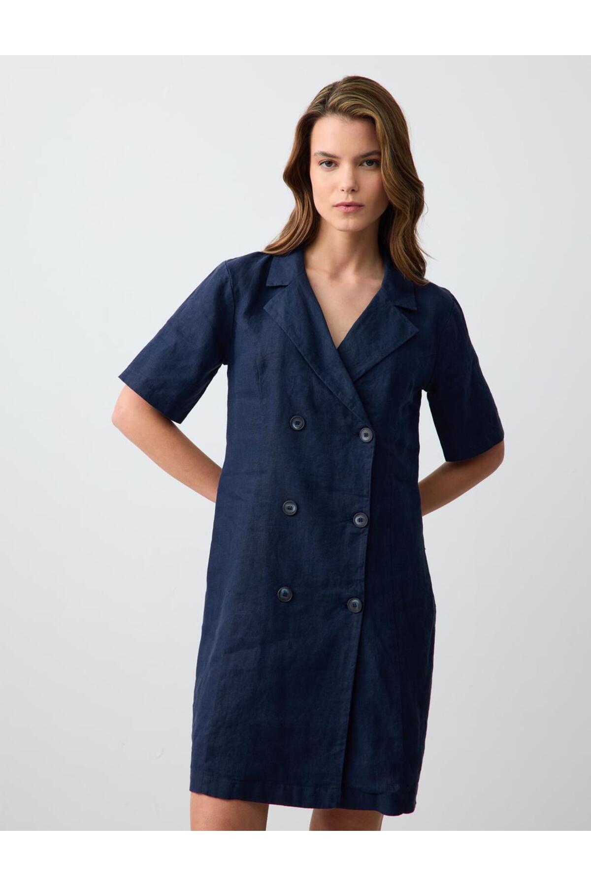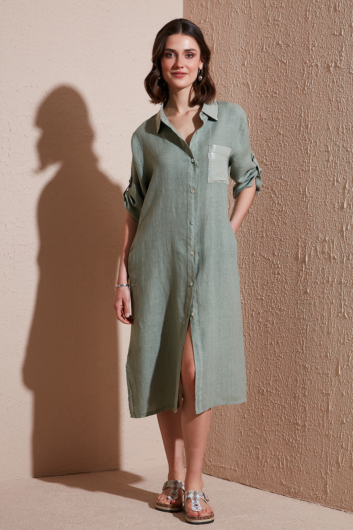 Bohem Yarım Kollu V Yaka Düğme Detay Keten Elbise Bohem Yarım Kollu V Yaka Düğme Detay Keten Elbise ERENSTYLE-924 42