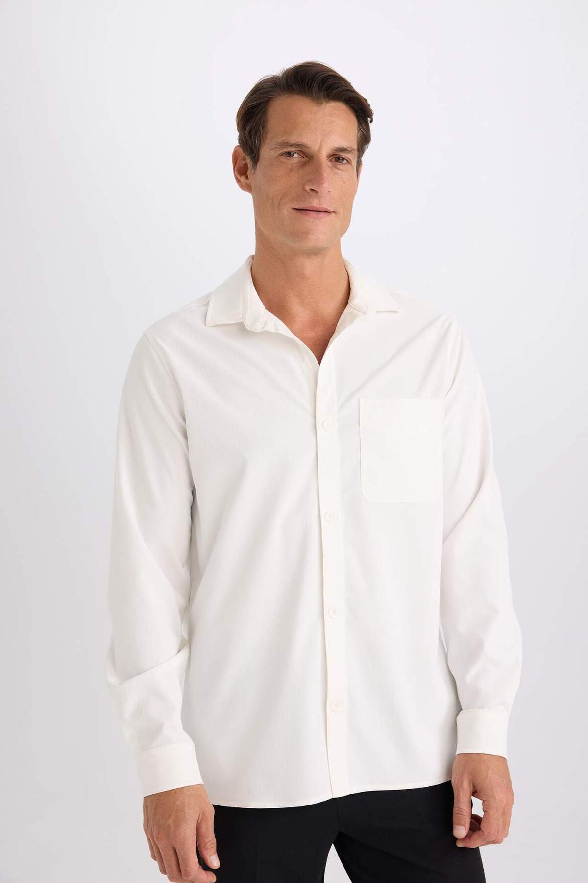 Regular Fit Polo Yaka Basic Düz Gofre Uzun Kollu Beyaz Gömlek D8713AX25SP Regular Fit Polo Yaka Basic Düz Gofre Uzun Kollu Beyaz Gömlek D8713AX25SP 3XL