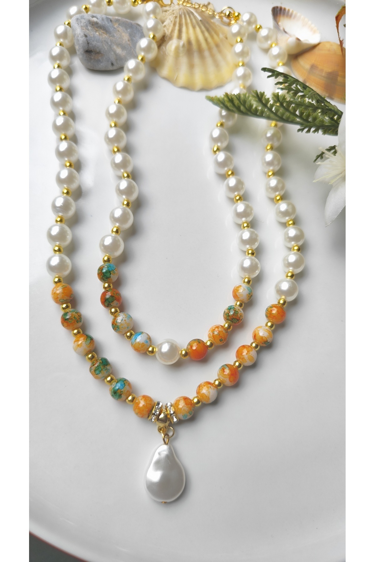 DOĞAL CAM BONCUK İNCİ KOLYE DOĞAL CAM BONCUK İNCİ KOLYE İNCİ002 تک سایز