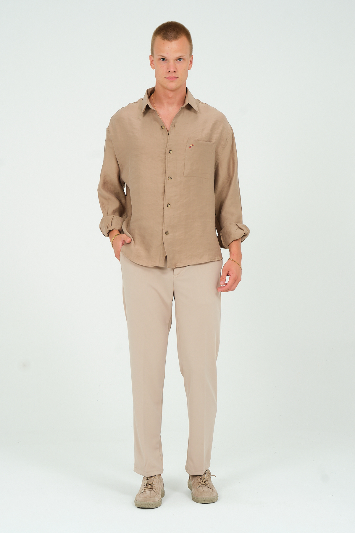Tenby Çizgili Pamuk Keten Gömlek Kahve Rengi Tenby Çizgili Pamuk Keten Gömlek Kahve Rengi 25ygom007 XL