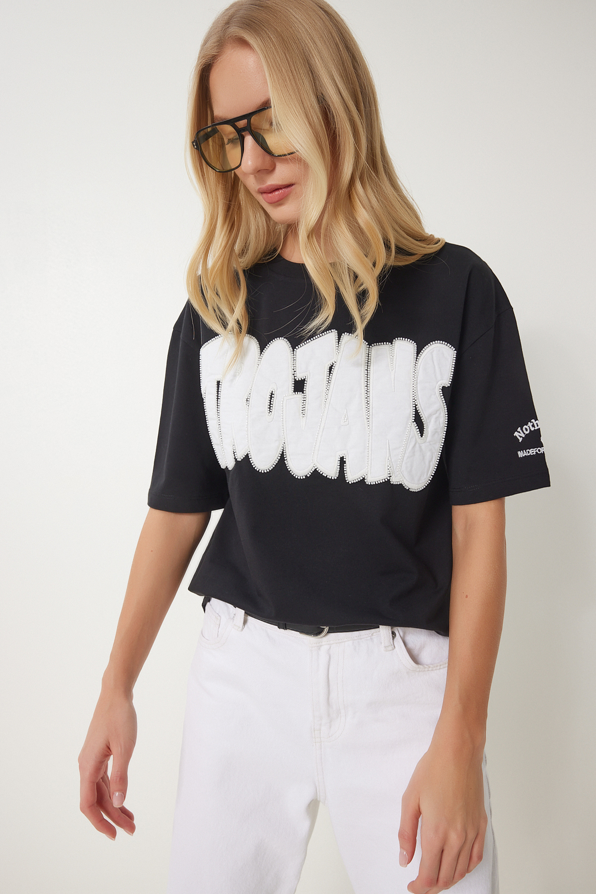 Kadın Ekru Sloganlı Boncuk İşlemeli Pamuklu T-Shirt CR00463 Kadın Ekru Sloganlı Boncuk İşlemeli Pamuklu T-Shirt CR00463 40