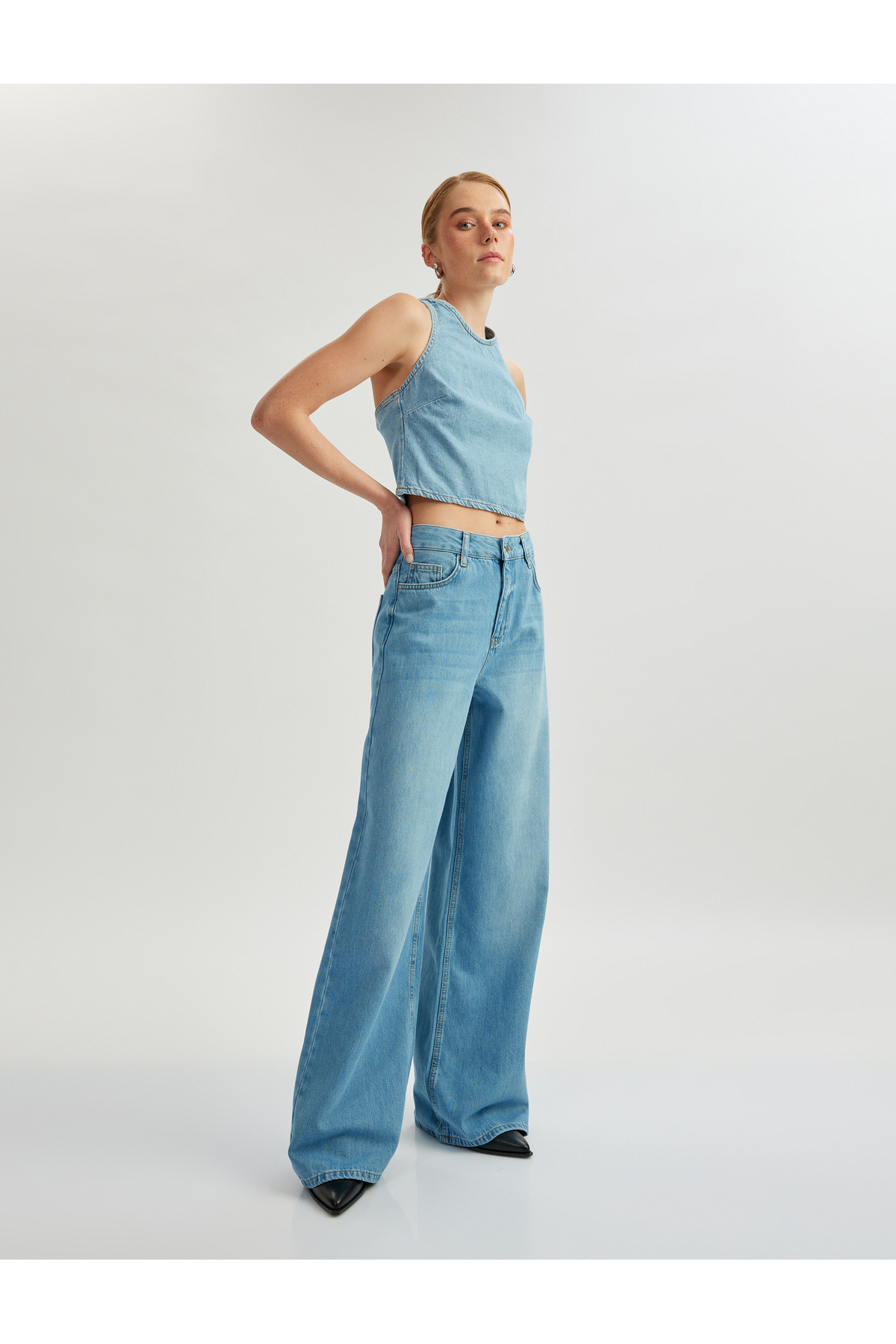 Yüksek Bel Geniş Paça Renk Bloklu Pamuklu Denim Pantolon- Wide Leg Jeans Yüksek Bel Geniş Paça Renk Bloklu Pamuklu Denim Pantolon- Wide Leg Jeans 5SAL40204MD 29/32