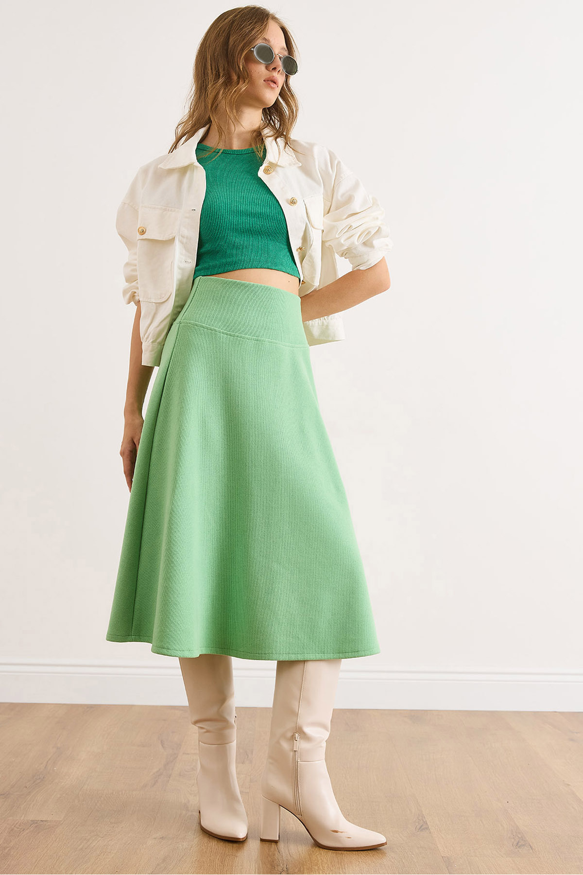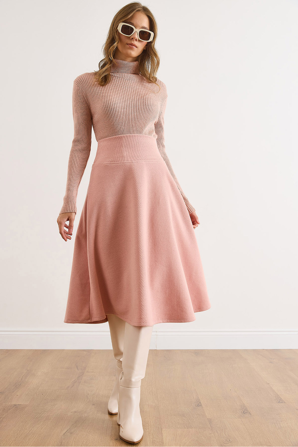 Kadın Kahverengi Beli Bantlı Selanik Çan Etek ETK-19000297 Kadın Kahverengi Beli Bantlı Selanik Çan Etek ETK-19000297 L