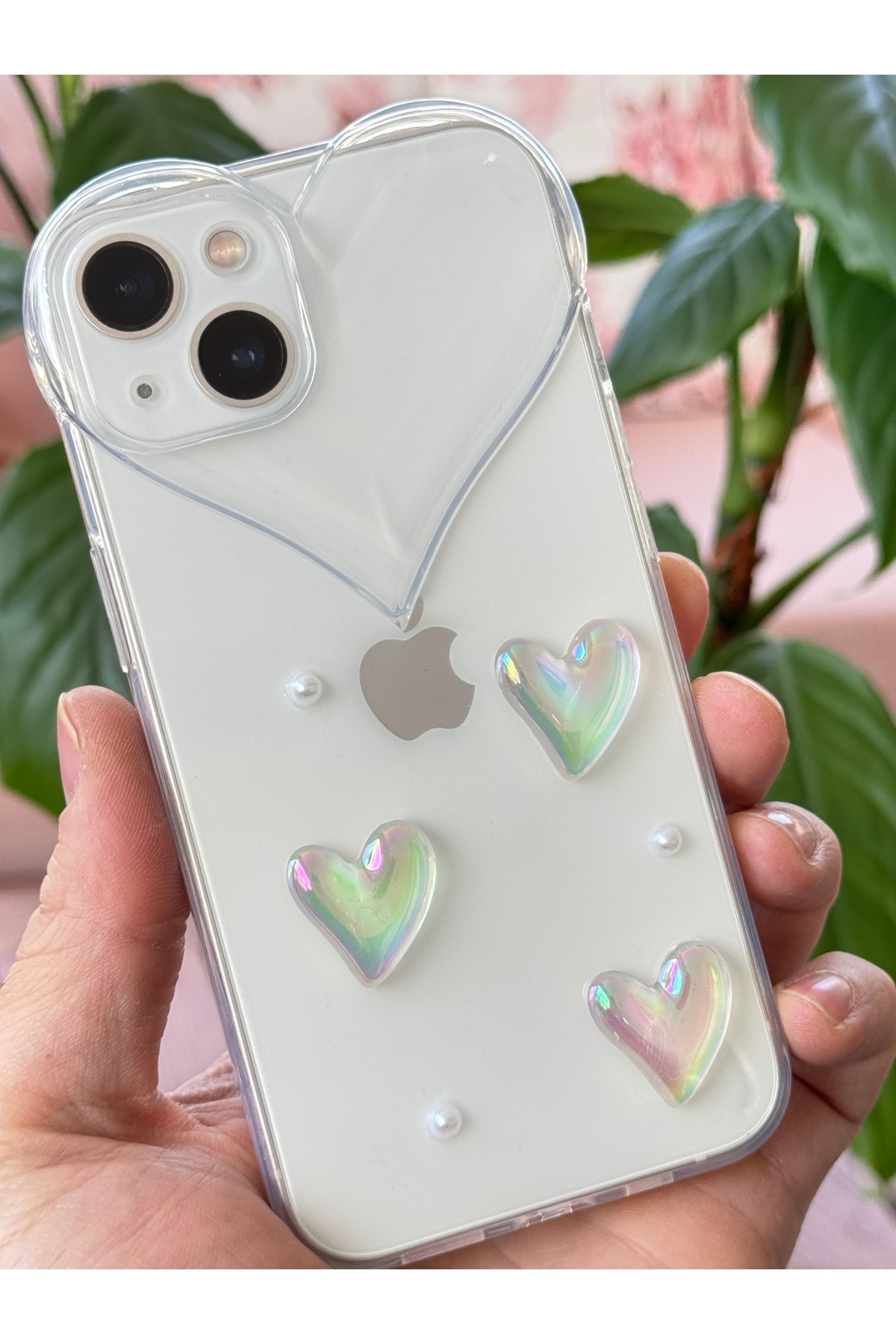 Apple iPhone 13 Kılıf Kalpli İnci Desenli Kalp Kamera Tasarımlı Şeffaf Kamera Korumalı Silikon Kapak Apple iPhone 13 Kılıf Kalpli İnci Desenli Kalp Kamera Tasarımlı Şeffaf Kamera Korumalı Silikon Kapak DESİ İPHONE 13 تک سایز