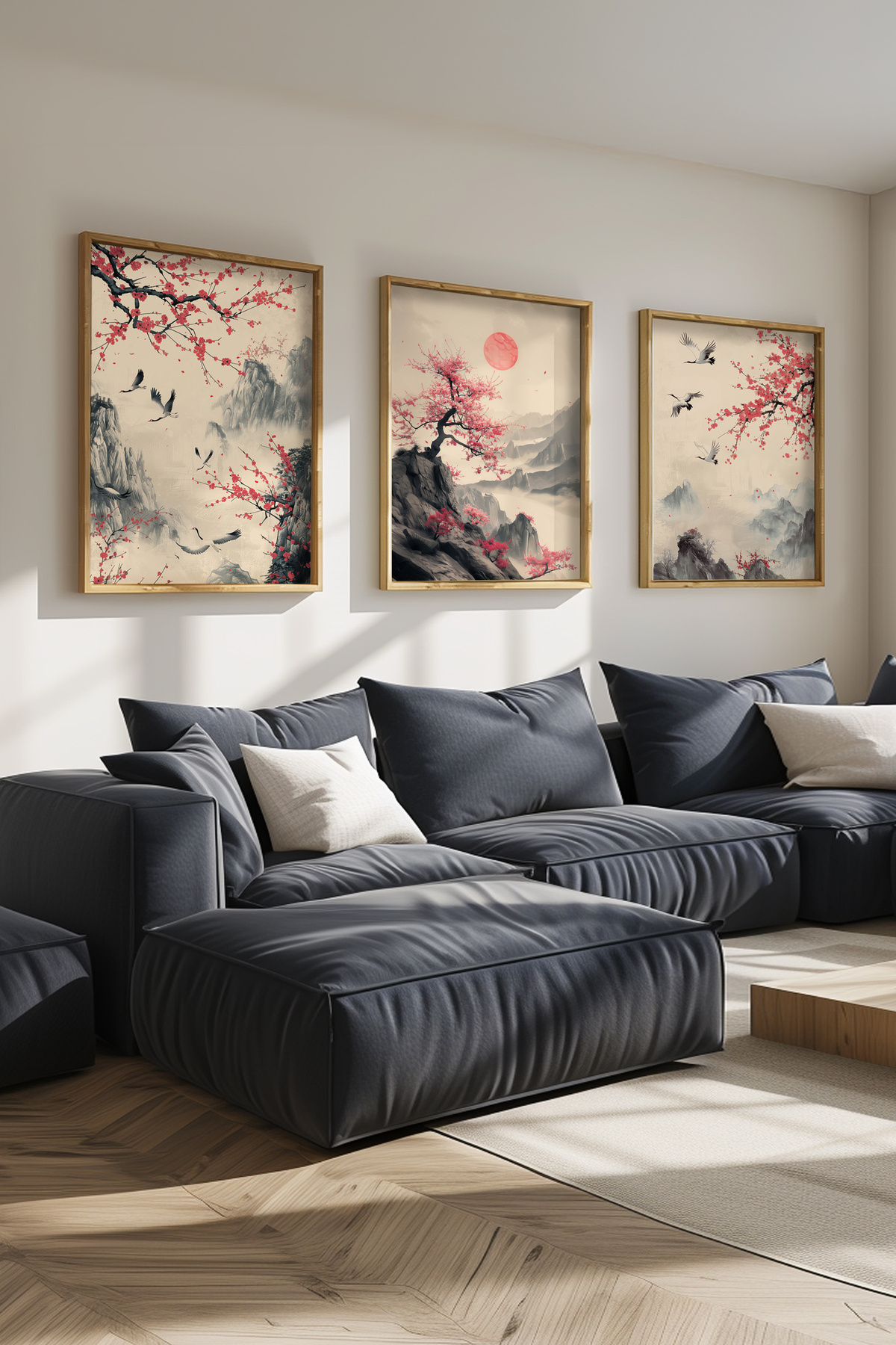 Çerçeveli boho tablo, 3'lü siyah ahşap çerçeveli tablo seti Yuna75 Çerçeveli boho tablo, 3'lü siyah ahşap çerçeveli tablo seti Yuna75 yuna75 50 x 70
