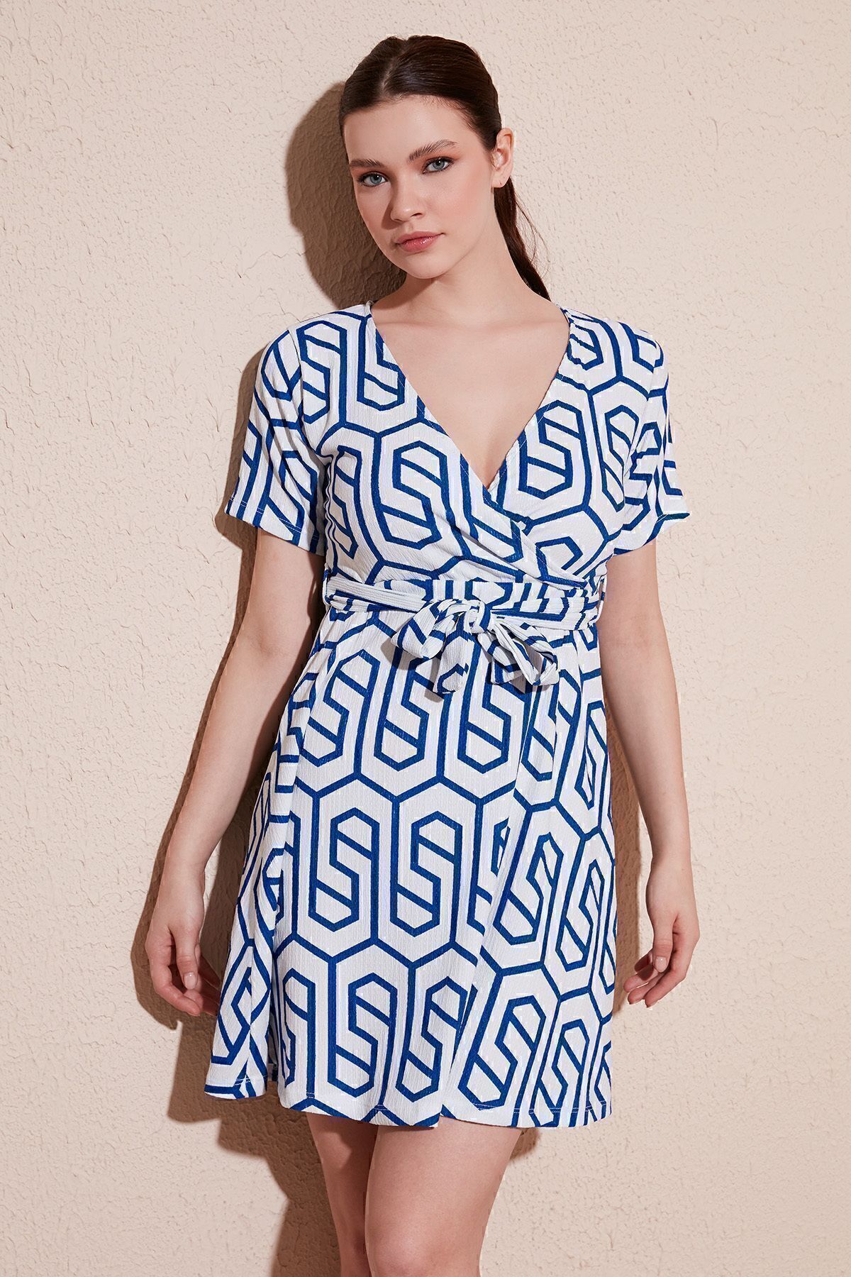 Regular Fit V Yaka Desenli Midi Boy Elbise ELBİSE 67810573 Regular Fit V Yaka Desenli Midi Boy Elbise ELBİSE 67810573 XL
