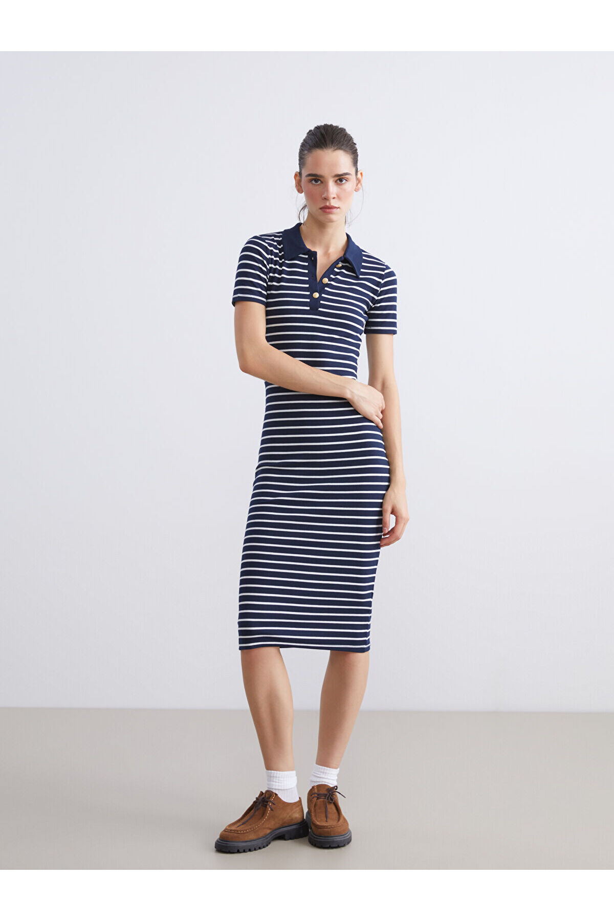 Streç Slim Fit Düğmeli Polo Yaka Kısa Kollu Mini Boy Çizgili Elbise ELBİSE 5866167 Streç Slim Fit Düğmeli Polo Yaka Kısa Kollu Mini Boy Çizgili Elbise ELBİSE 5866167 XL