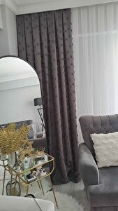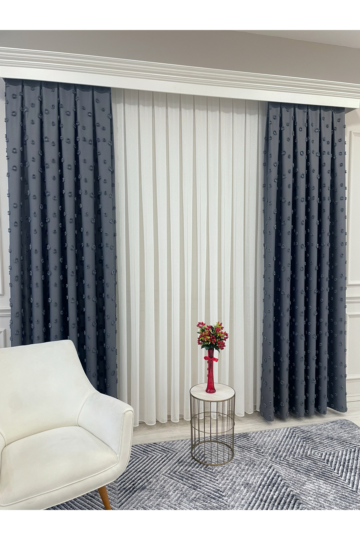 Koyu Gri Renk Ponponlu Pufy Fon Perde 1/3 SIK Pile Koyu Gri Renk Ponponlu Pufy Fon Perde 1/3 SIK Pile JAKAR_PUFY 110 x 270