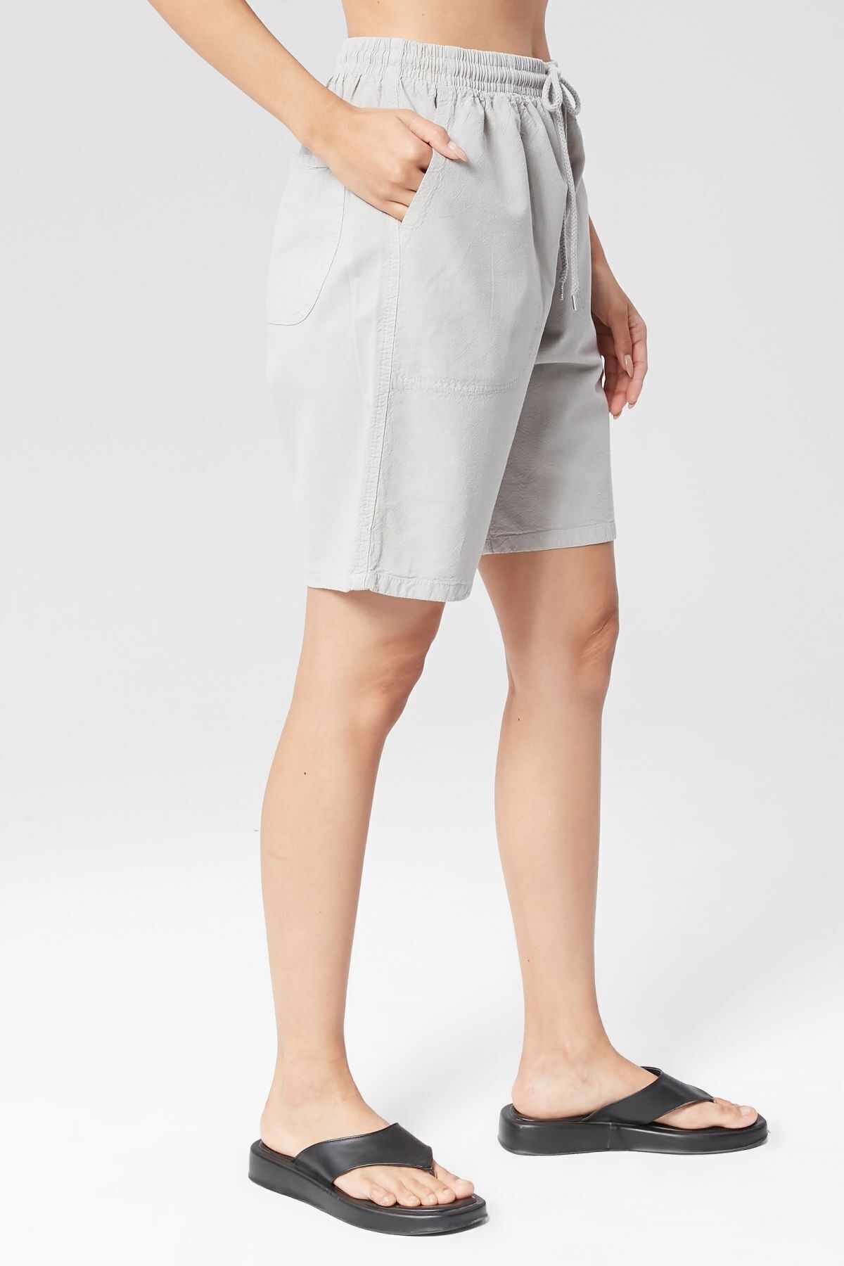 Kadın Açık Gri Rahat Kesim Pamuklu Şort - Keten, Yüksek Bel, Beli Lastikli Monaha Kadın Açık Gri Rahat Kesim Pamuklu Şort - Keten, Yüksek Bel, Beli Lastikli Monaha MNHKRTKS10010 5XL