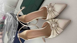 Helen Kalp Detaylı Kısa Topuklu Gelin Ayakkabısı Helen Kalp Detaylı Kısa Topuklu Gelin Ayakkabısı 1035 41
