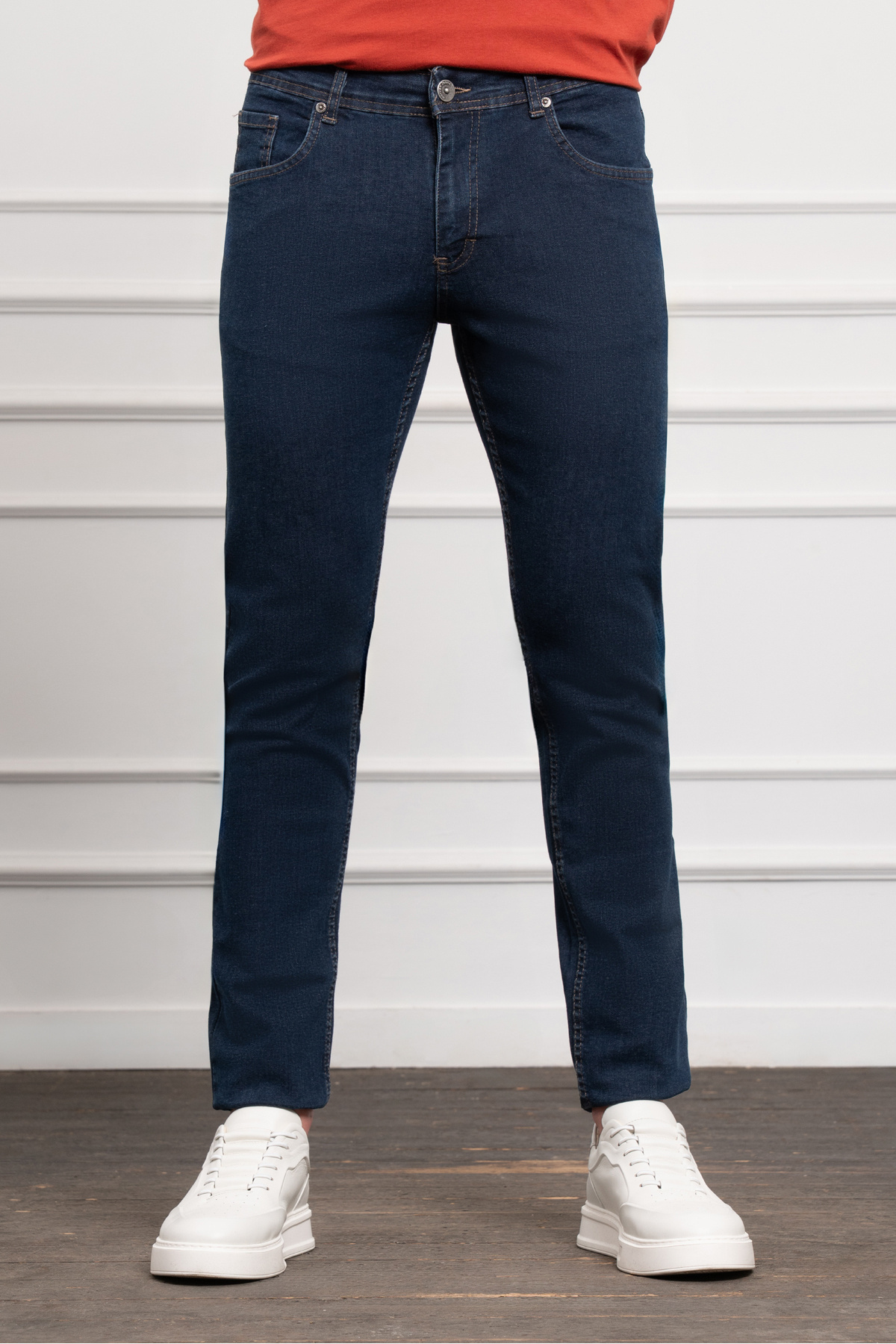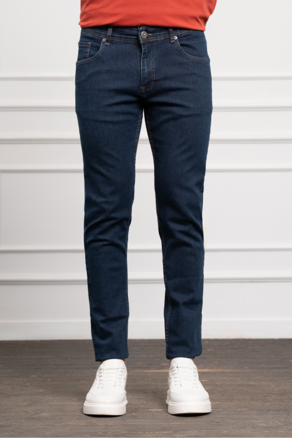 Erkek Lacivert Jean Slim Fit Dar Kesim Pantolon Erkek Lacivert Jean Slim Fit Dar Kesim Pantolon 25MS003019 40