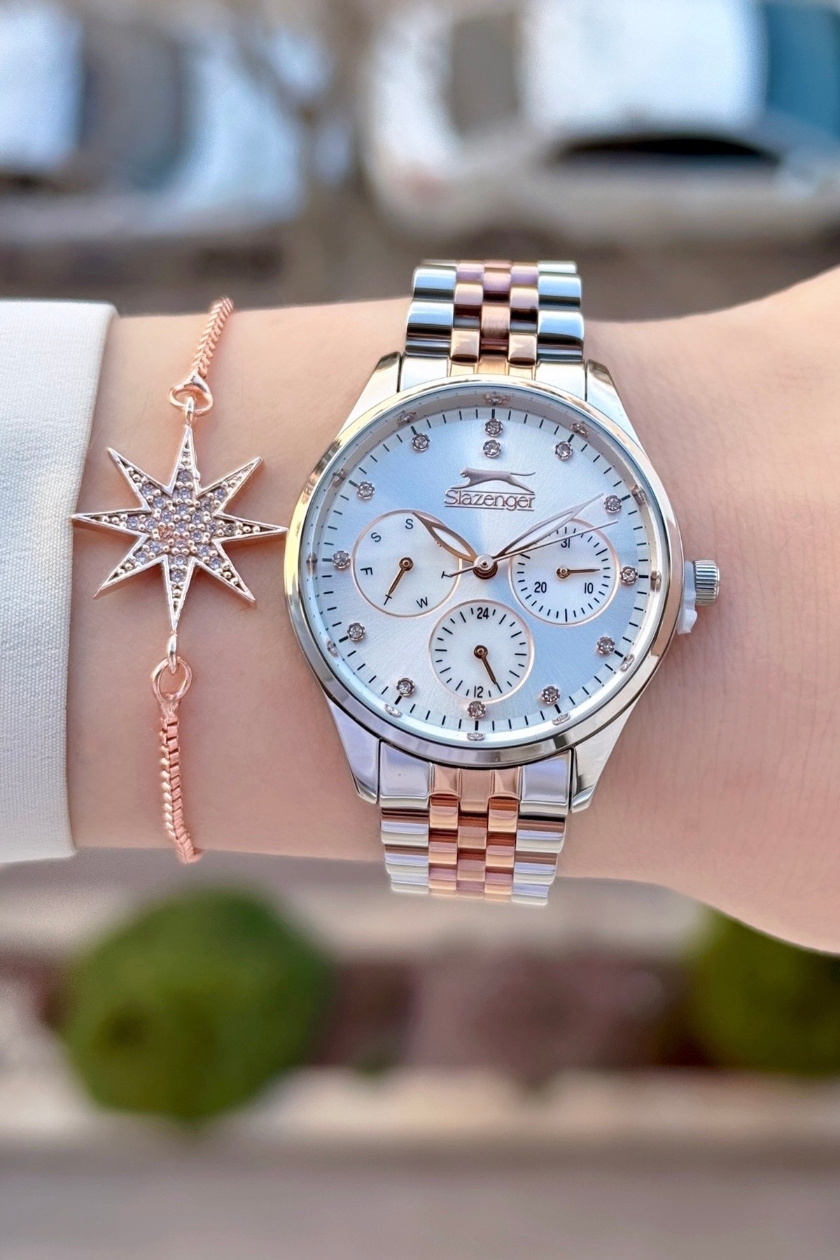 Bakır Metalik Renk 2 Yıl Garantili Kadın Kol Saati Ve Bileklik Bakır Metalik Renk 2 Yıl Garantili Kadın Kol Saati Ve Bileklik SLSADGO924O44Y تک سایز