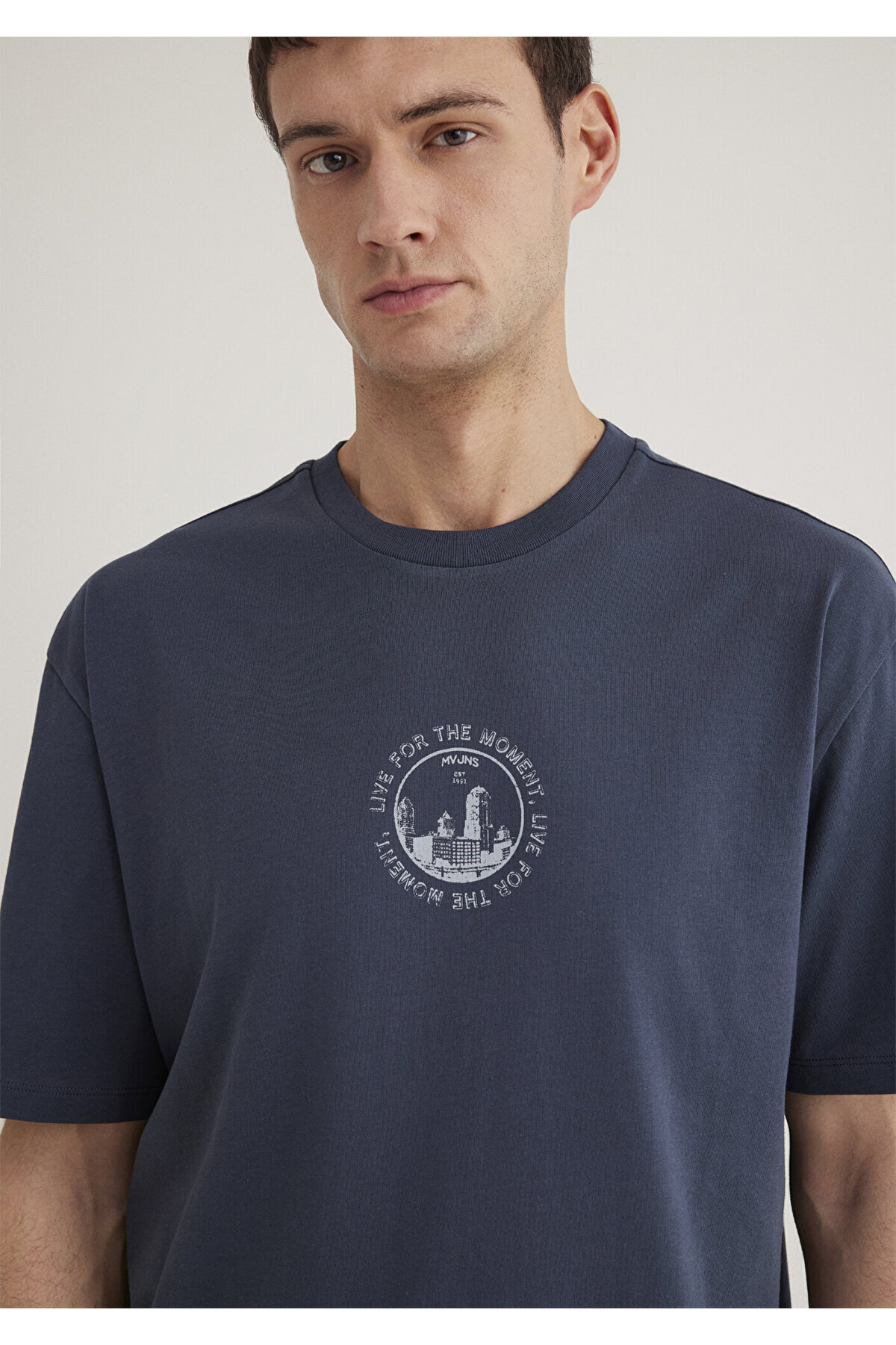 Baskılı Lacivert Tişört Loose Fit / Bol Rahat Kesim 0612627-70726 Baskılı Lacivert Tişört Loose Fit / Bol Rahat Kesim 0612627-70726 2XL