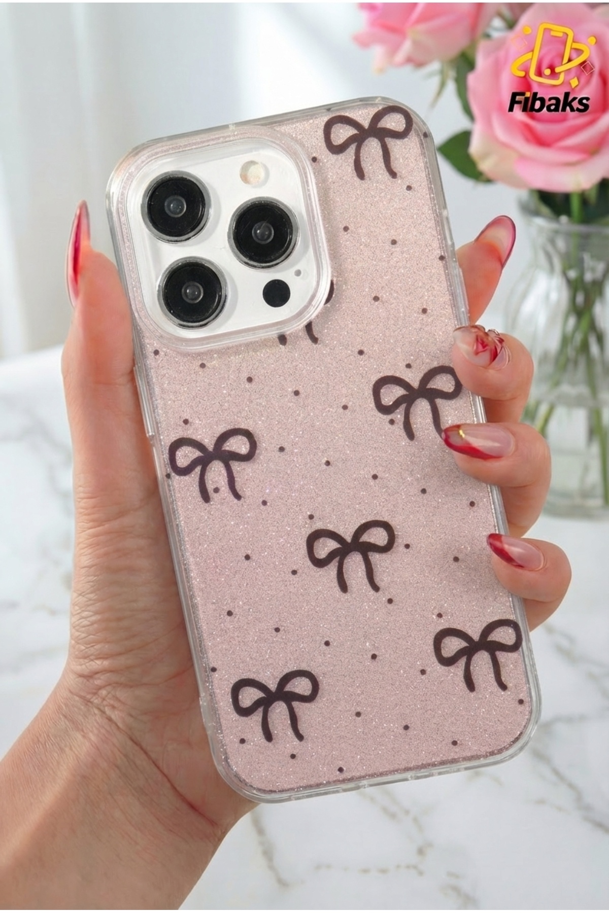 Apple iPhone 15 Pro Max Kılıf Yumuşak Dokulu Fiyonk Desenli Kahverengi Yumuşak Kamera Korumalı Kapak Apple iPhone 15 Pro Max Kılıf Yumuşak Dokulu Fiyonk Desenli Kahverengi Yumuşak Kamera Korumalı Kapak DS-ip-15-promax-aynalı-simli-taşlı-pembe تک سایز