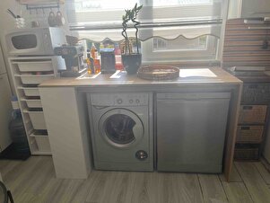 Edgar L4810 Mutfak Adası Bar Masası 160 cm Ahşap Üst Beyaz Alt Çok Amaçlı Depolamalı Oturmalı Masa Edgar L4810 Mutfak Adası Bar Masası 160 cm Ahşap Üst Beyaz Alt Çok Amaçlı Depolamalı Oturmalı Masa تک سایز