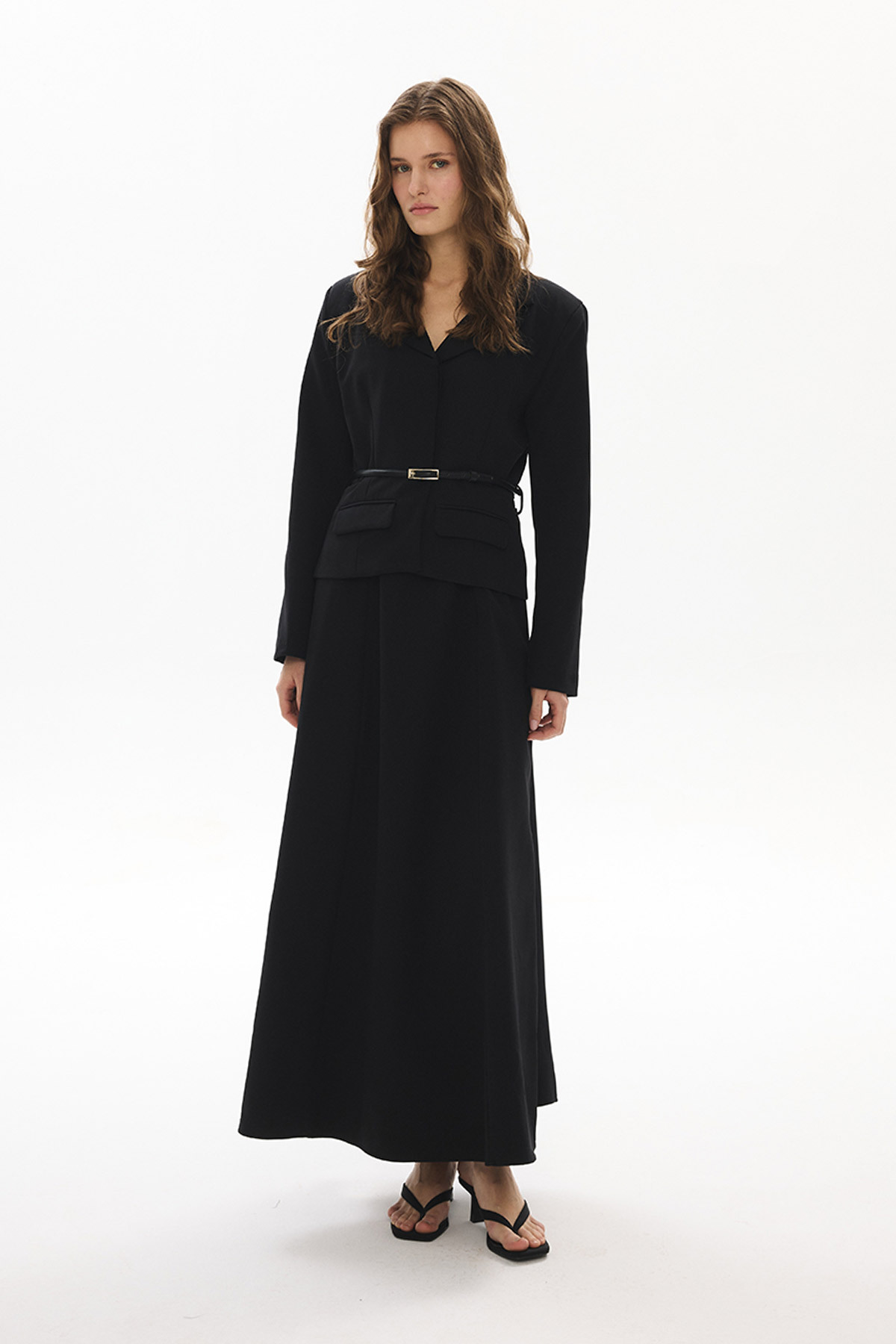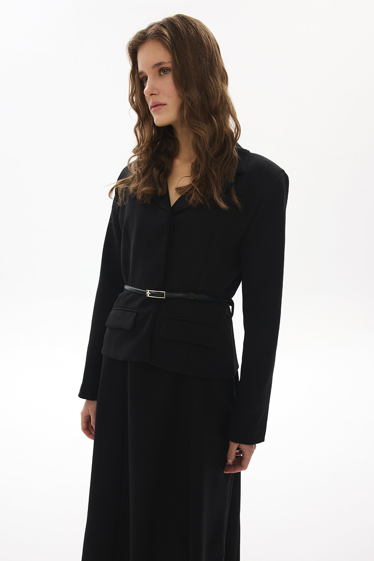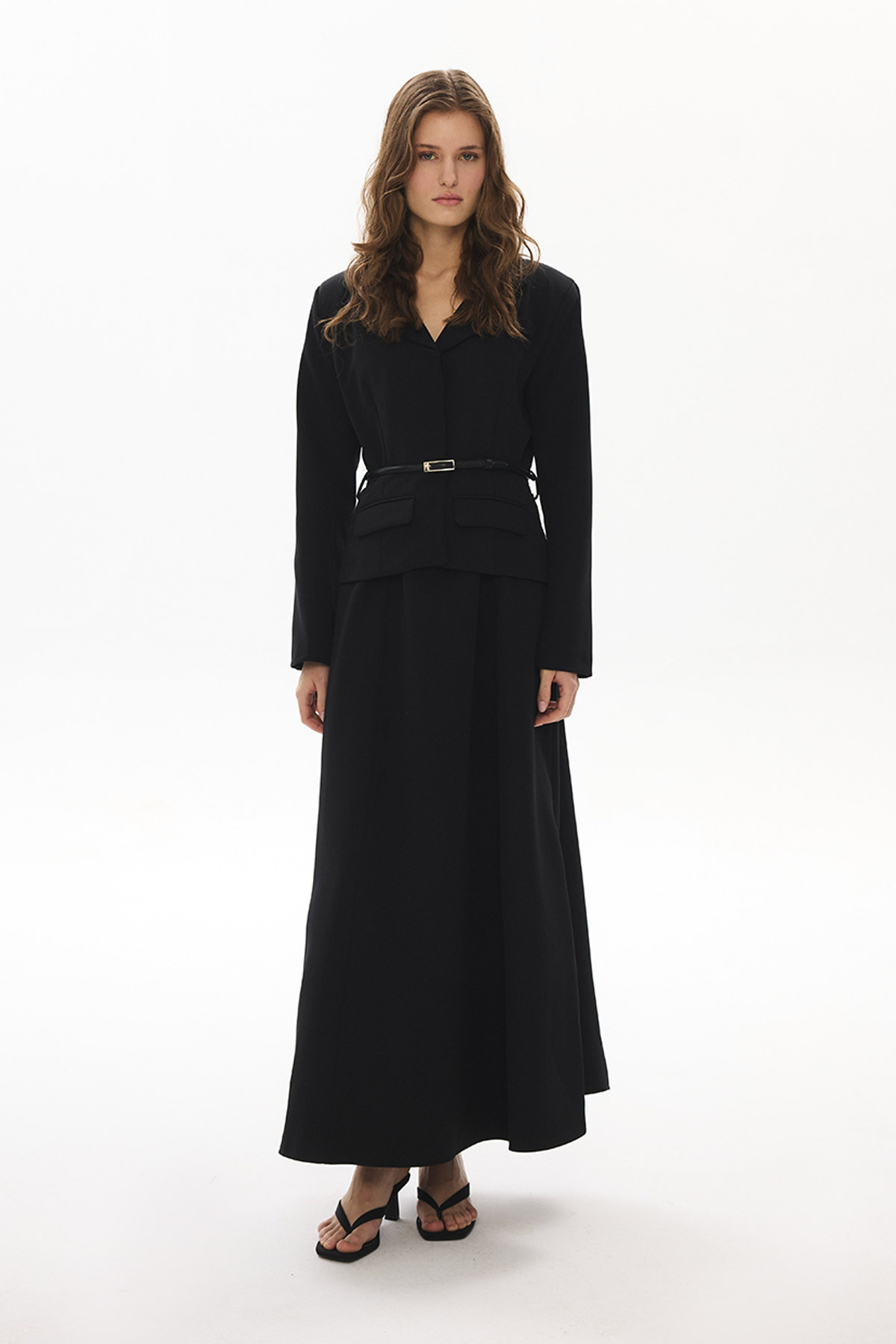 Premium Gold Kemer Detaylı Siyah Ceket Elbise Premium Gold Kemer Detaylı Siyah Ceket Elbise HY25077-SİYAH XL