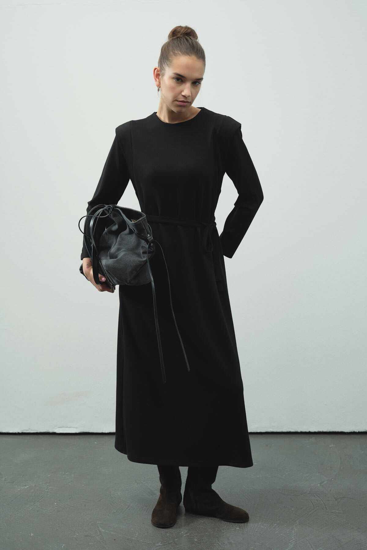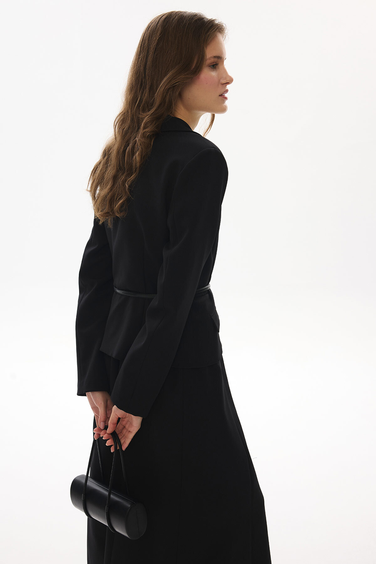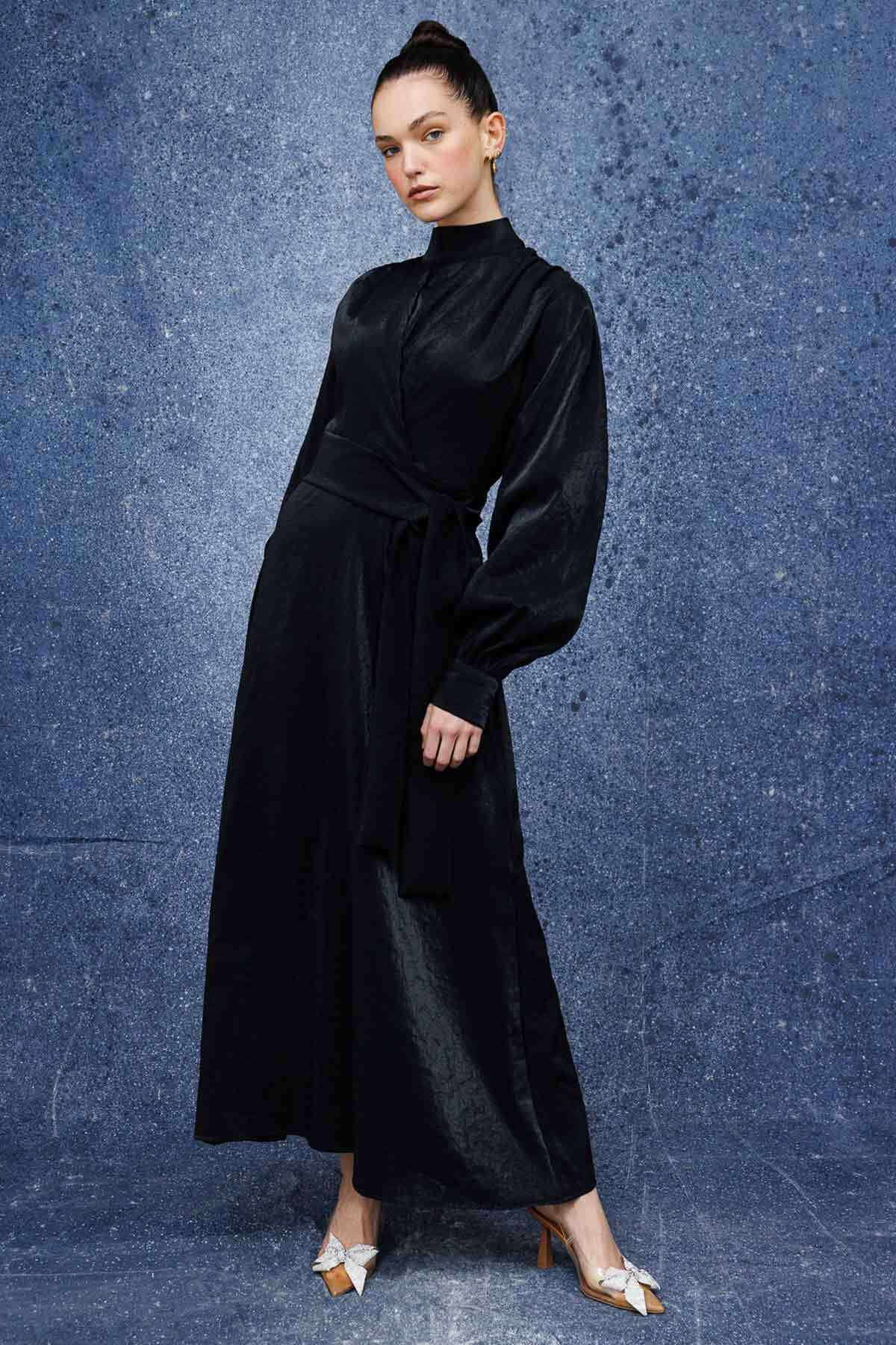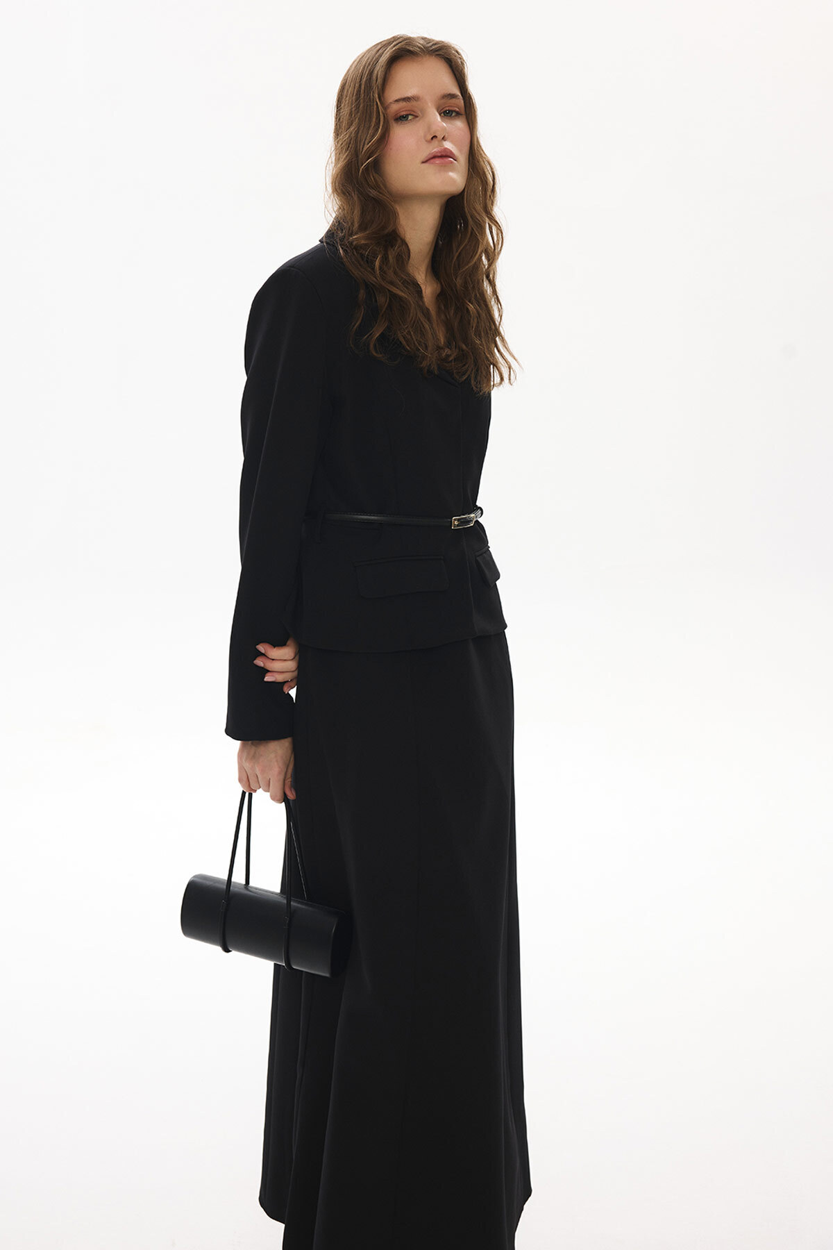 Premium Gold Kemer Detaylı Siyah Ceket Elbise Premium Gold Kemer Detaylı Siyah Ceket Elbise HY25077-SİYAH XL