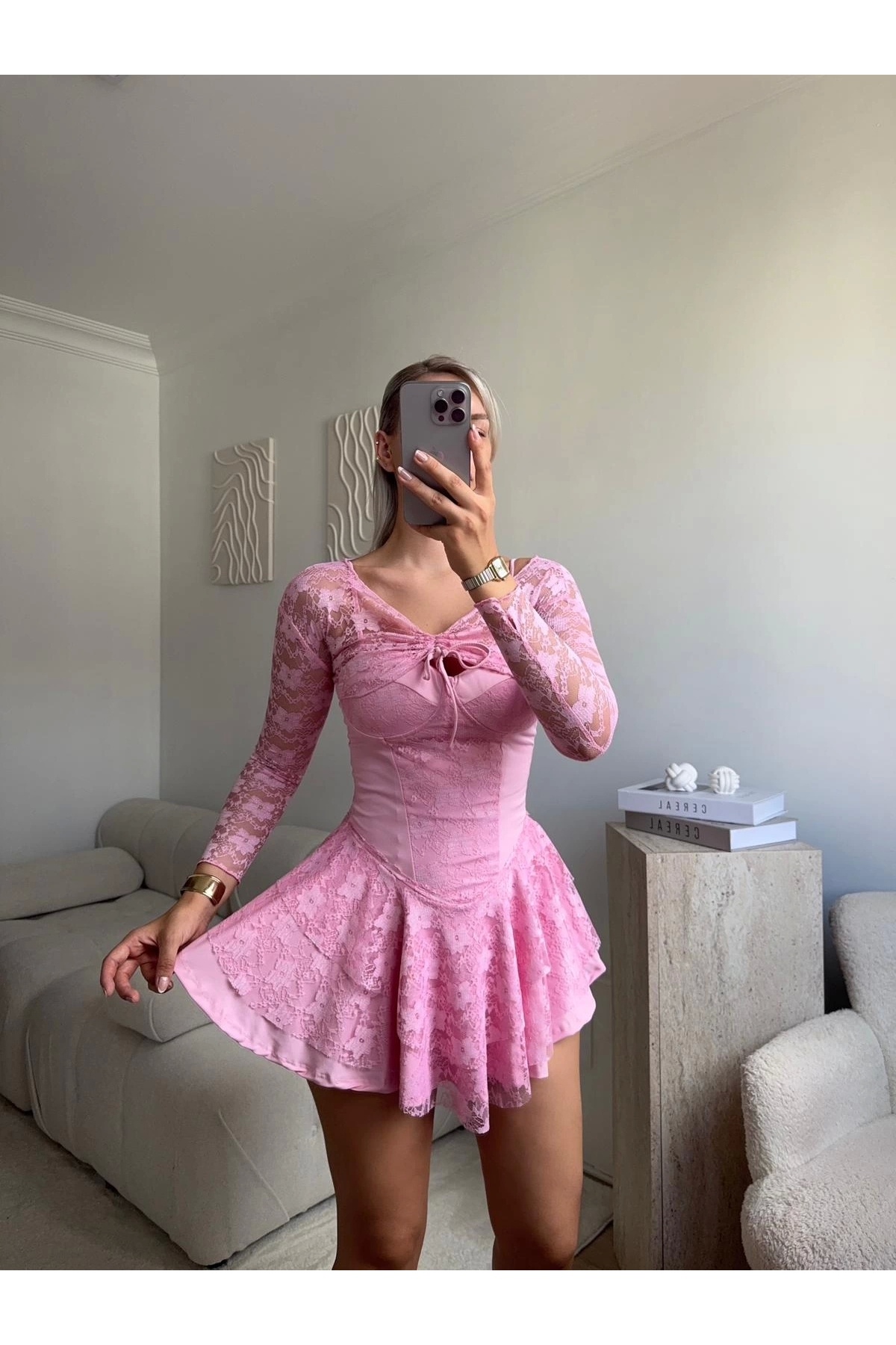 Kadın Pembe Renk Sırt Dekolteli Kısa Kollu Elbise Kadın Pembe Renk Sırt Dekolteli Kısa Kollu Elbise TG255 XL