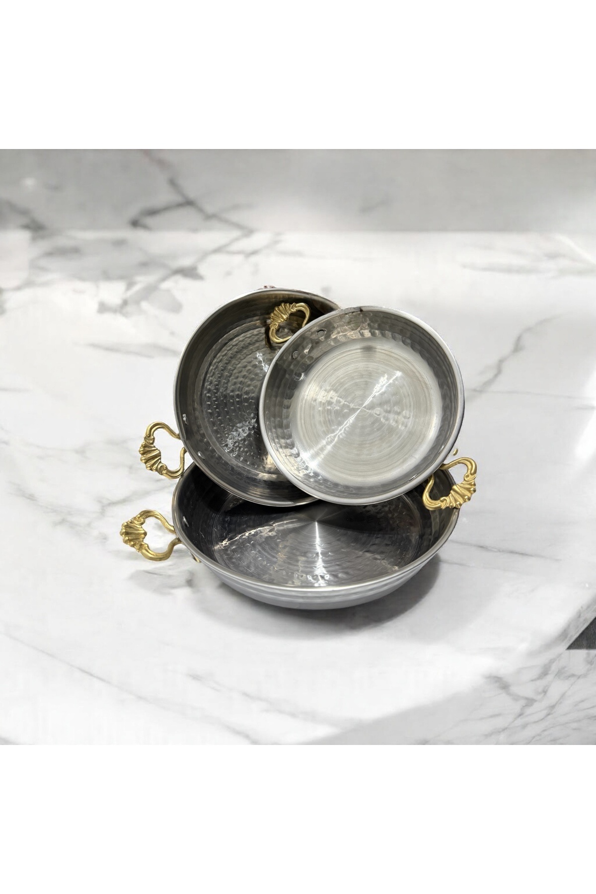 3’lü Krom Sahan Tavası, Sarı Kulplu 17, 19, 21 CM 3’lü Krom Sahan Tavası, Sarı Kulplu 17, 19, 21 CM sahan3 تک سایز