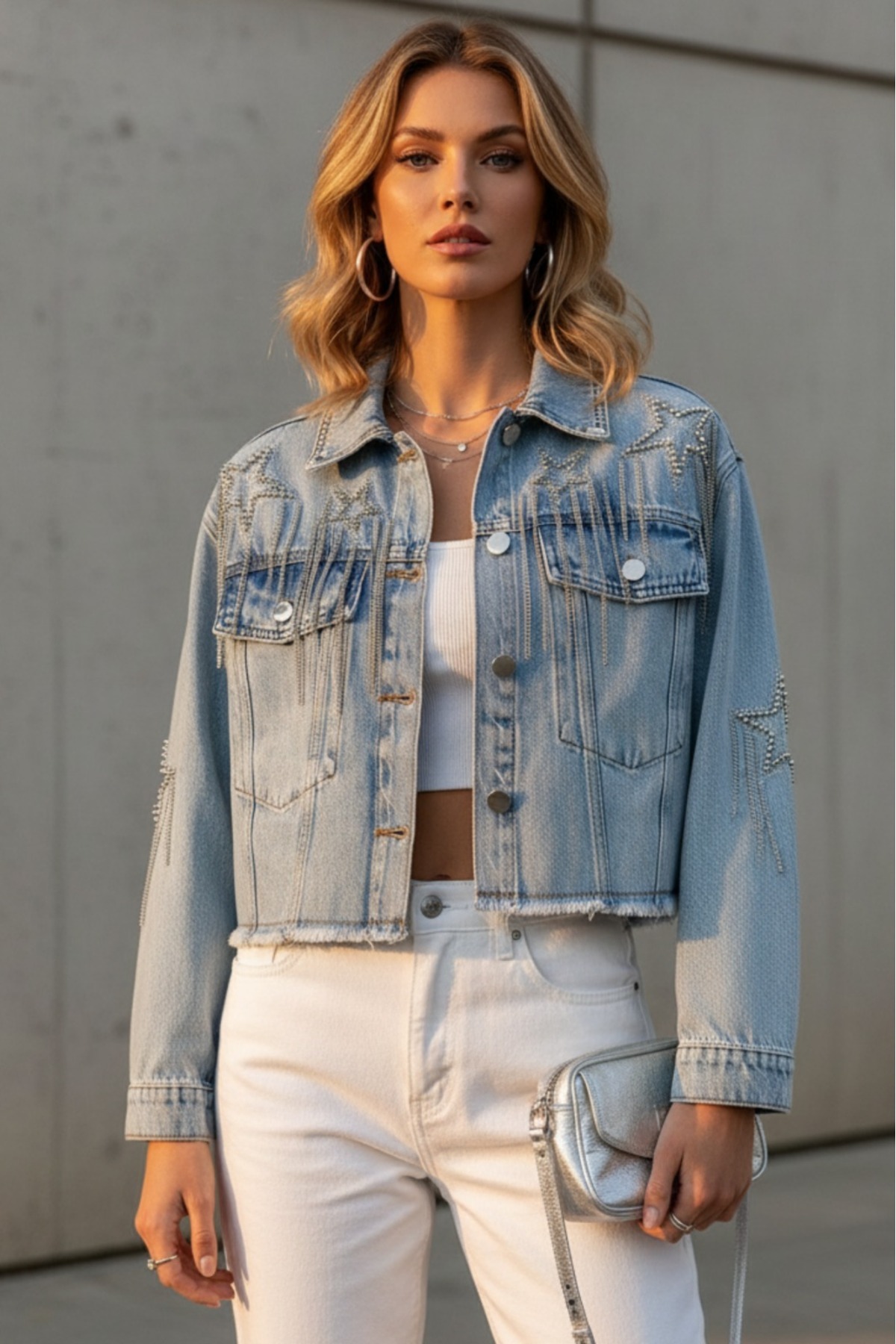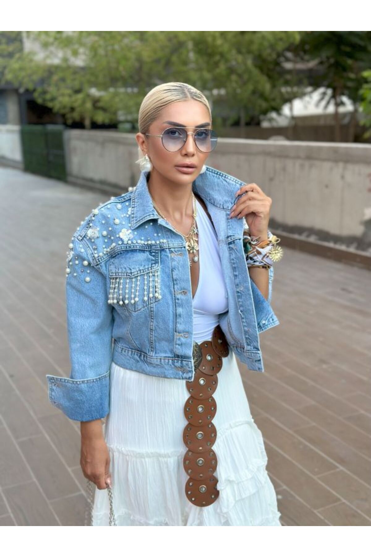 99359 Boncuk Taşlı Jean Ceket Mavi 99359 Boncuk Taşlı Jean Ceket Mavi 683024 L