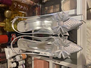 Fiyonklu Kadın Stiletto Taşlı Sivri Burun Arkası Açık Abiye Topuklu Ayakkabı Gümüş Fiyonklu Kadın Stiletto Taşlı Sivri Burun Arkası Açık Abiye Topuklu Ayakkabı Gümüş 23632aym 40