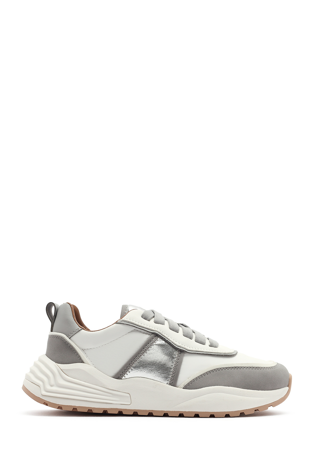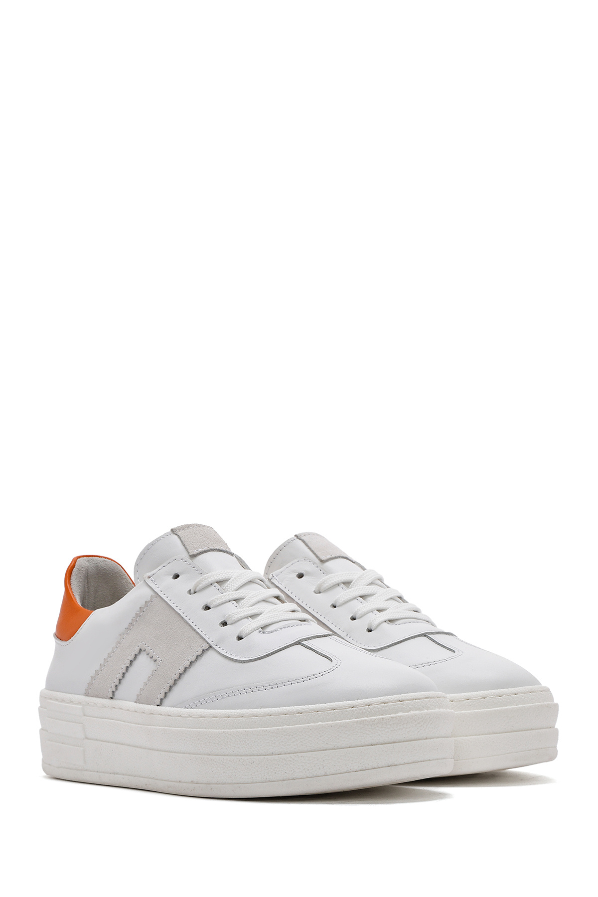 Kadın Beyaz Bağcıklı Kalın Tabanlı Deri Sneaker 25SFD371718 Kadın Beyaz Bağcıklı Kalın Tabanlı Deri Sneaker 25SFD371718 40