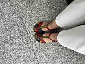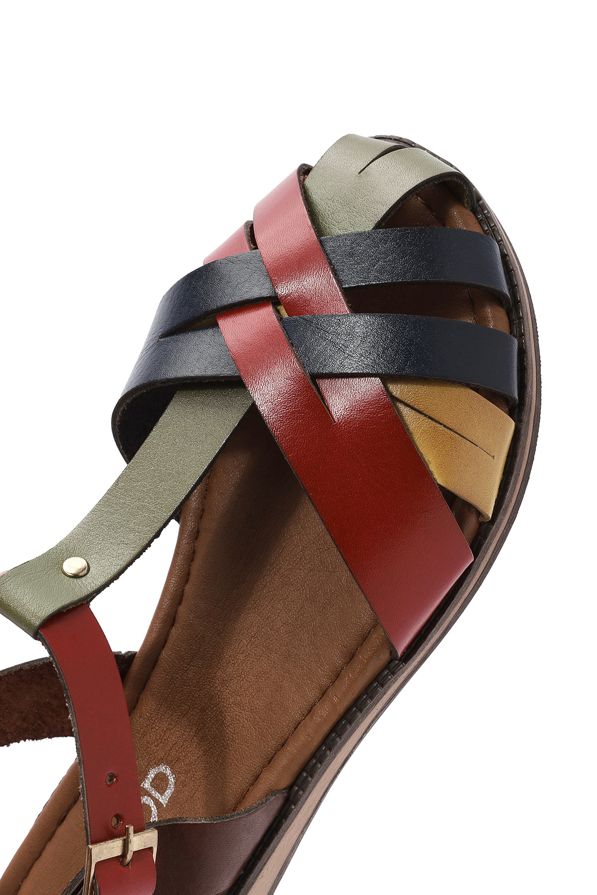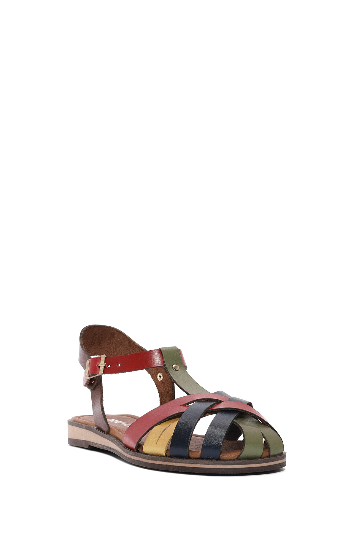 Kadın Çok Renkli Bilekten Bağlamalı Hakiki Deri Bodrum Sandalet 25SFD333718 Kadın Çok Renkli Bilekten Bağlamalı Hakiki Deri Bodrum Sandalet 25SFD333718 41
