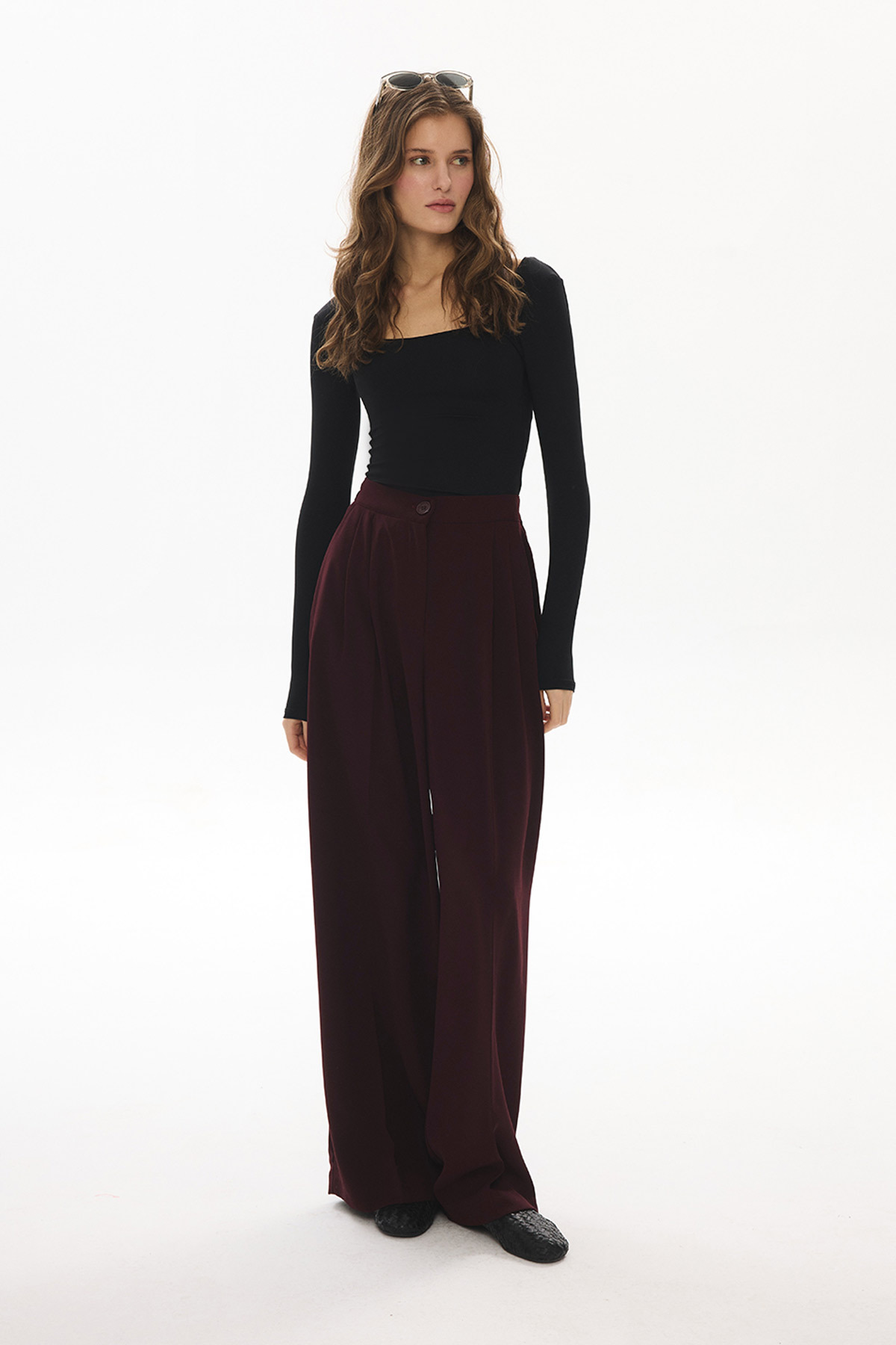 Class Lastik Detaylı Palazzo Bordo Pantolon Class Lastik Detaylı Palazzo Bordo Pantolon HY25091-BORDO 2XL
