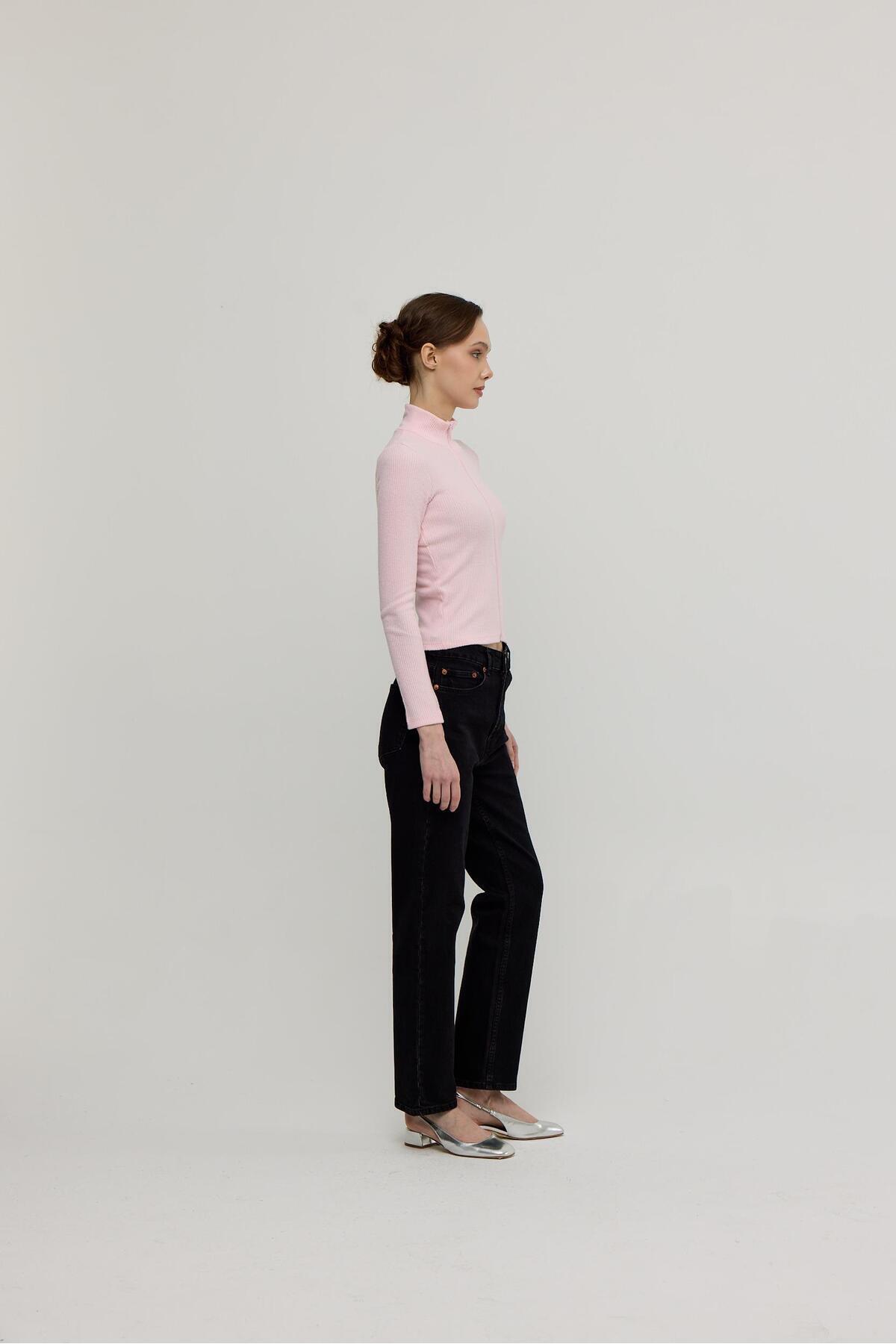 Kadın Pembe Renk Yarım Balıkçı Fermuarlı Crop Hırka Kadın Pembe Renk Yarım Balıkçı Fermuarlı Crop Hırka TG198 XL