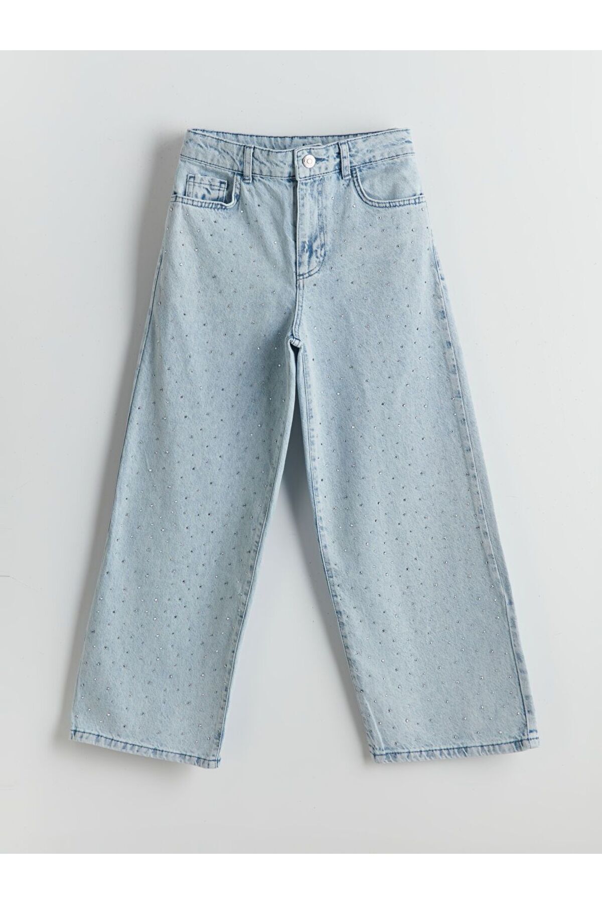 %100 Pamuk-Denim-Kot-Serpme Taşlı-Kar Yıkamalı-Kız Çocuk Pantolonu-Palazzo %100 Pamuk-Denim-Kot-Serpme Taşlı-Kar Yıkamalı-Kız Çocuk Pantolonu-Palazzo 3504-3505 12 Yaş