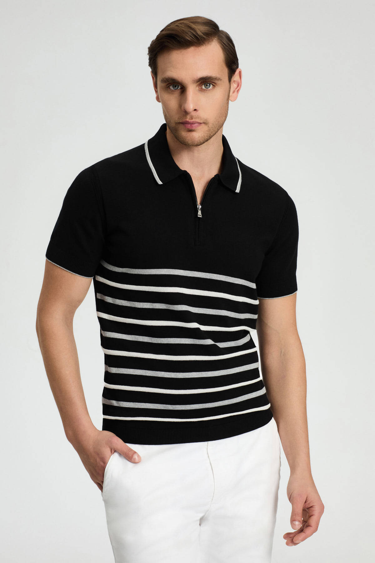 Zigzag Desen Siyah Giza Pamuk Triko Polo Zigzag Desen Siyah Giza Pamuk Triko Polo 252101|001 3XL
