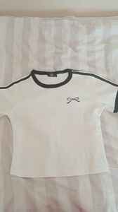 Beyaz Siyah Kol Şeritli Ribbon Detail Crop Beyaz Siyah Kol Şeritli Ribbon Detail Crop EFBUTIK15721 L/XL