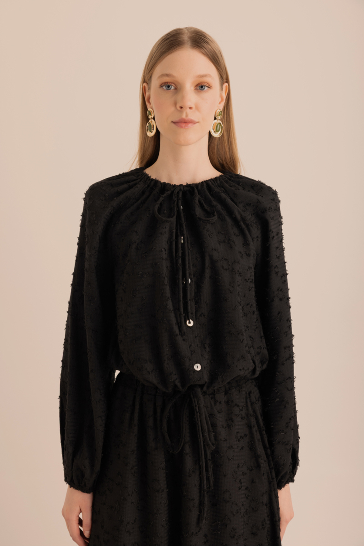 Kumaşı Püskül Detaylı Büzgülü Bluz Kumaşı Püskül Detaylı Büzgülü Bluz 25SS02317111 L