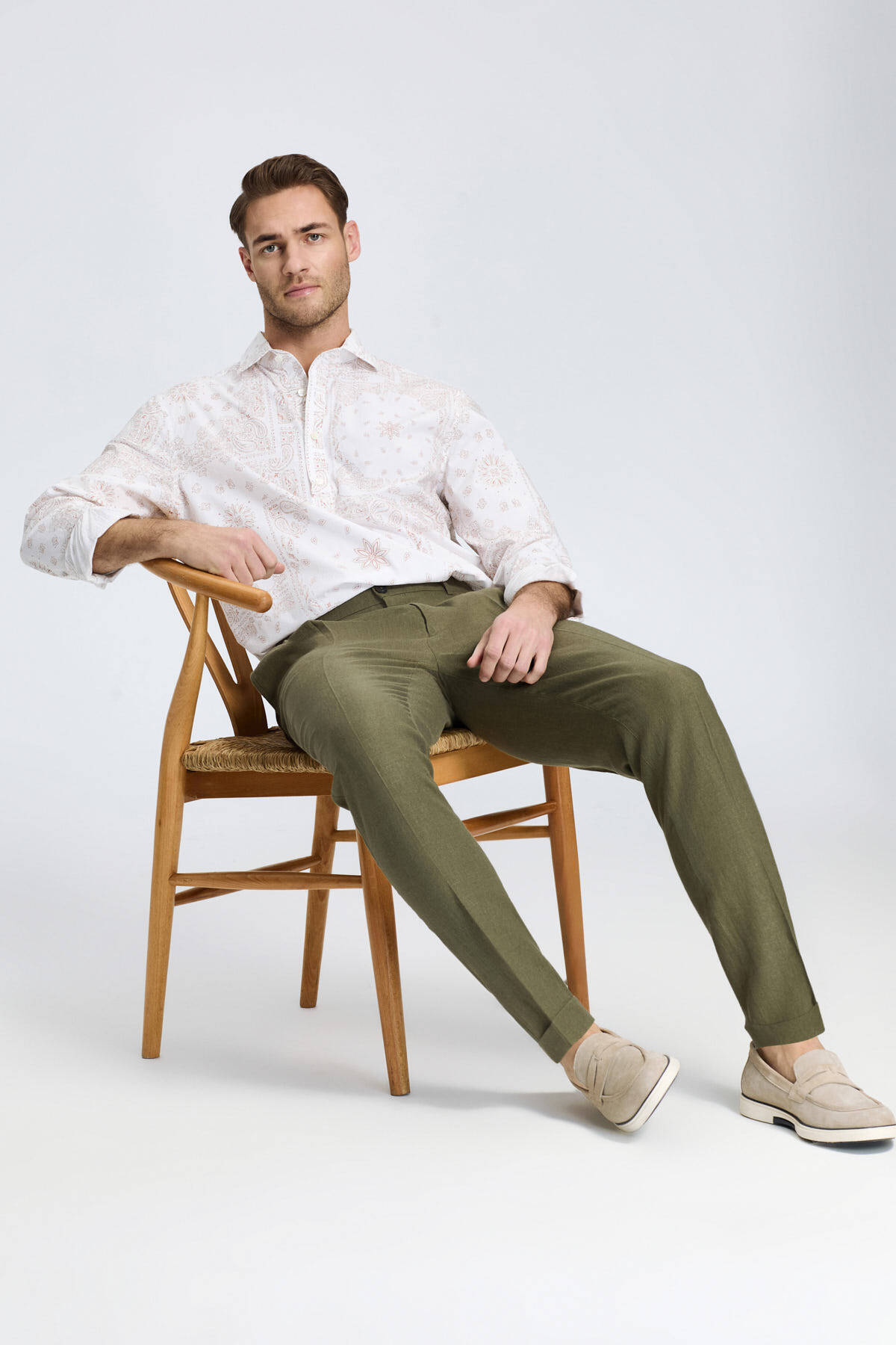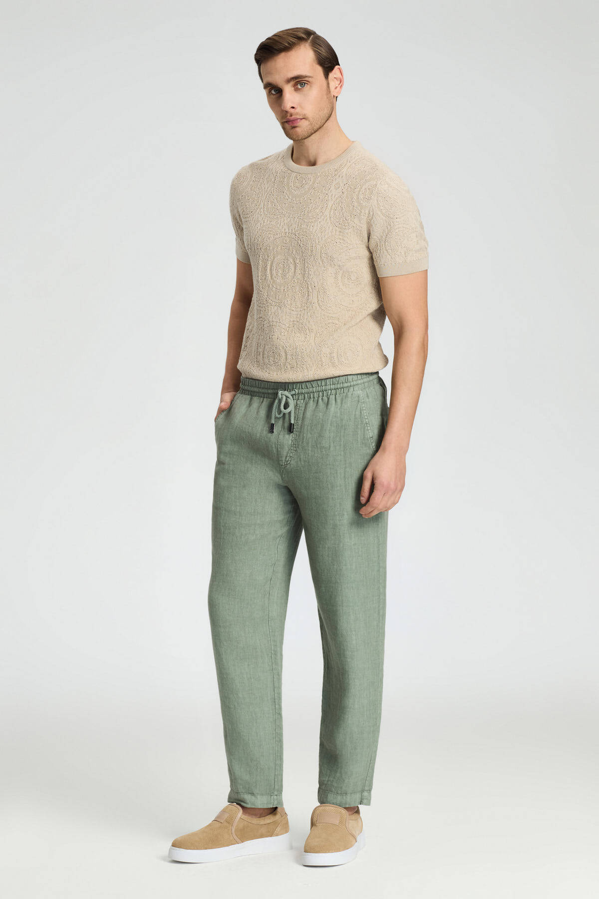 Saf Keten Bağcıklı Haki Pantolon Saf Keten Bağcıklı Haki Pantolon 252401|212 38