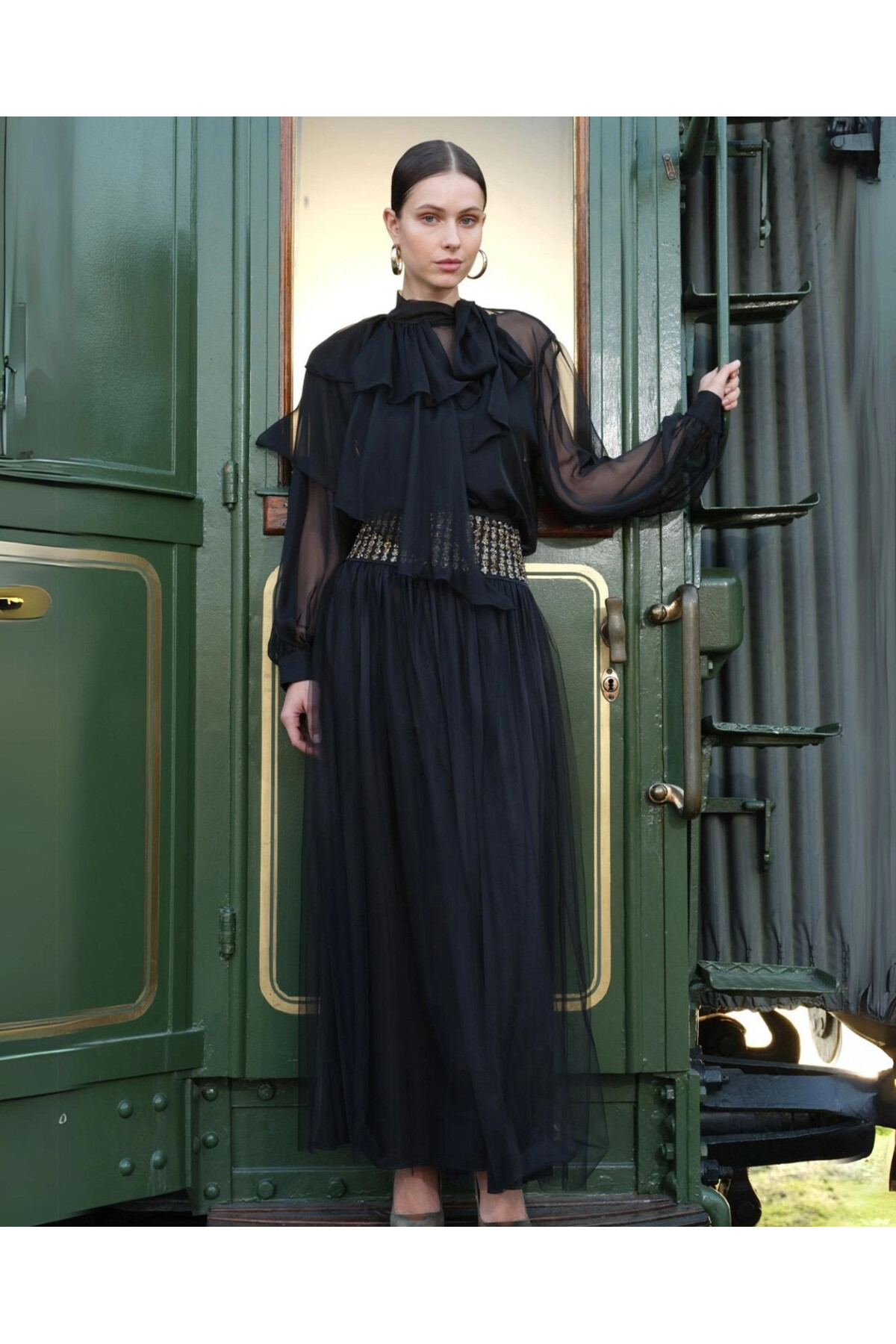 Desenli Piliseli Beli Lastikli Etek Desenli Piliseli Beli Lastikli Etek 25SS01234111 42