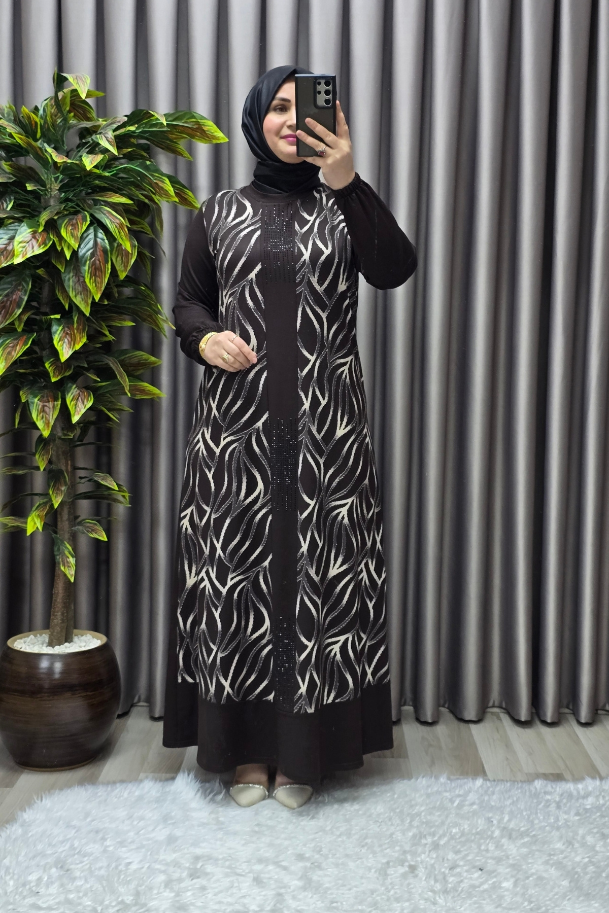 Kadın Tesettür Giyim Büyük Beden Osmanlı Desen Elbise Kadın Tesettür Giyim Büyük Beden Osmanlı Desen Elbise FER8686 2XL