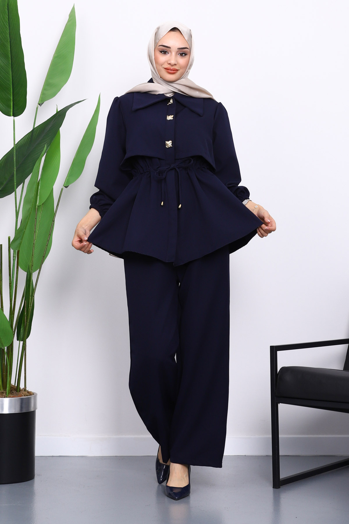 Siyah Ön Bağlamalı Kimono Pantolonlu Takım Siyah Ön Bağlamalı Kimono Pantolonlu Takım IMJ005943 2